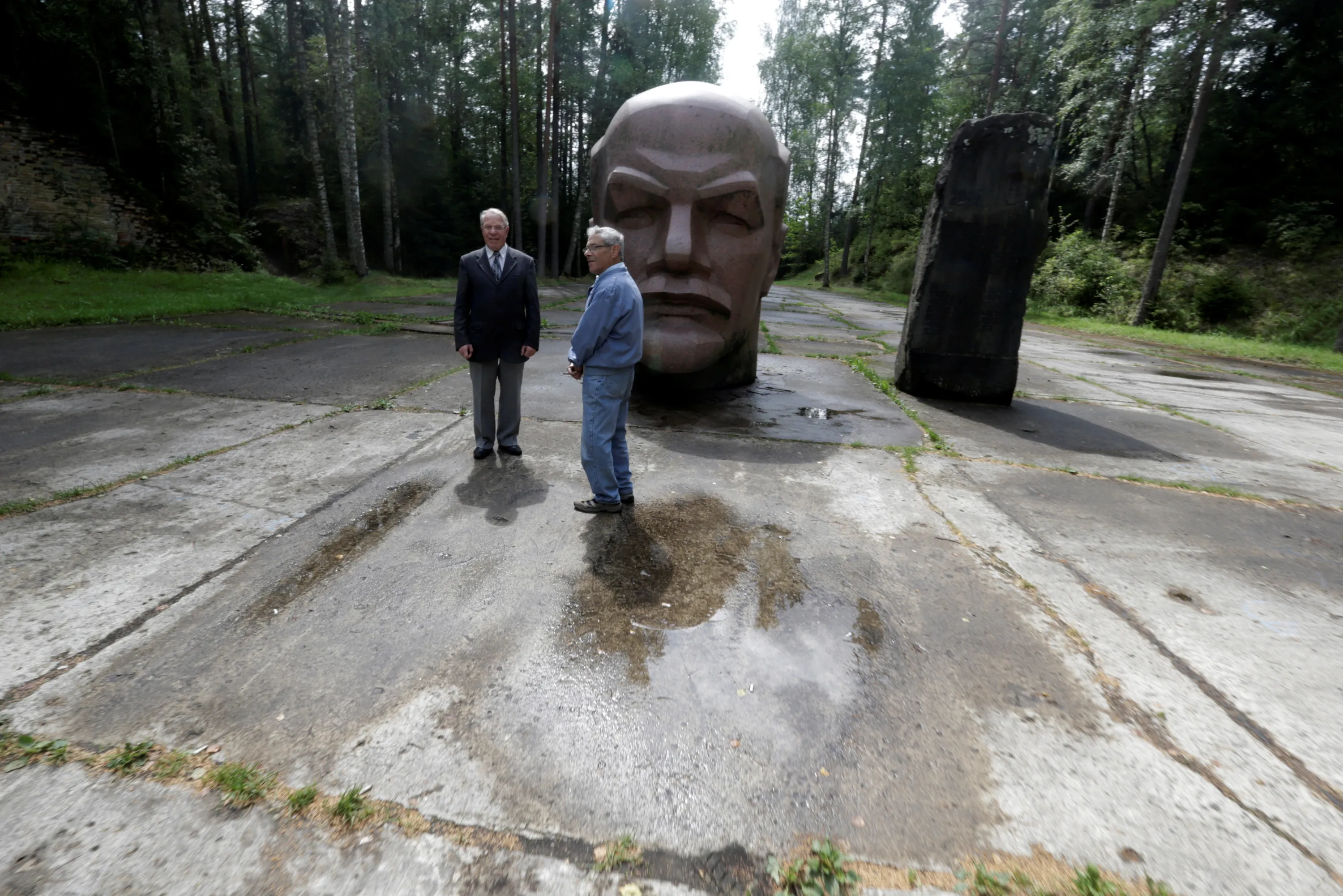 Former Soviet Army officers Leonid Konovalov (L) and Vladimir Procenko stand near the abandoned Soviet R12 nuclear missile launch site in Zeltini, Latvia, July 22, 2016. (Photo by Ints Kalnins/Reuters)