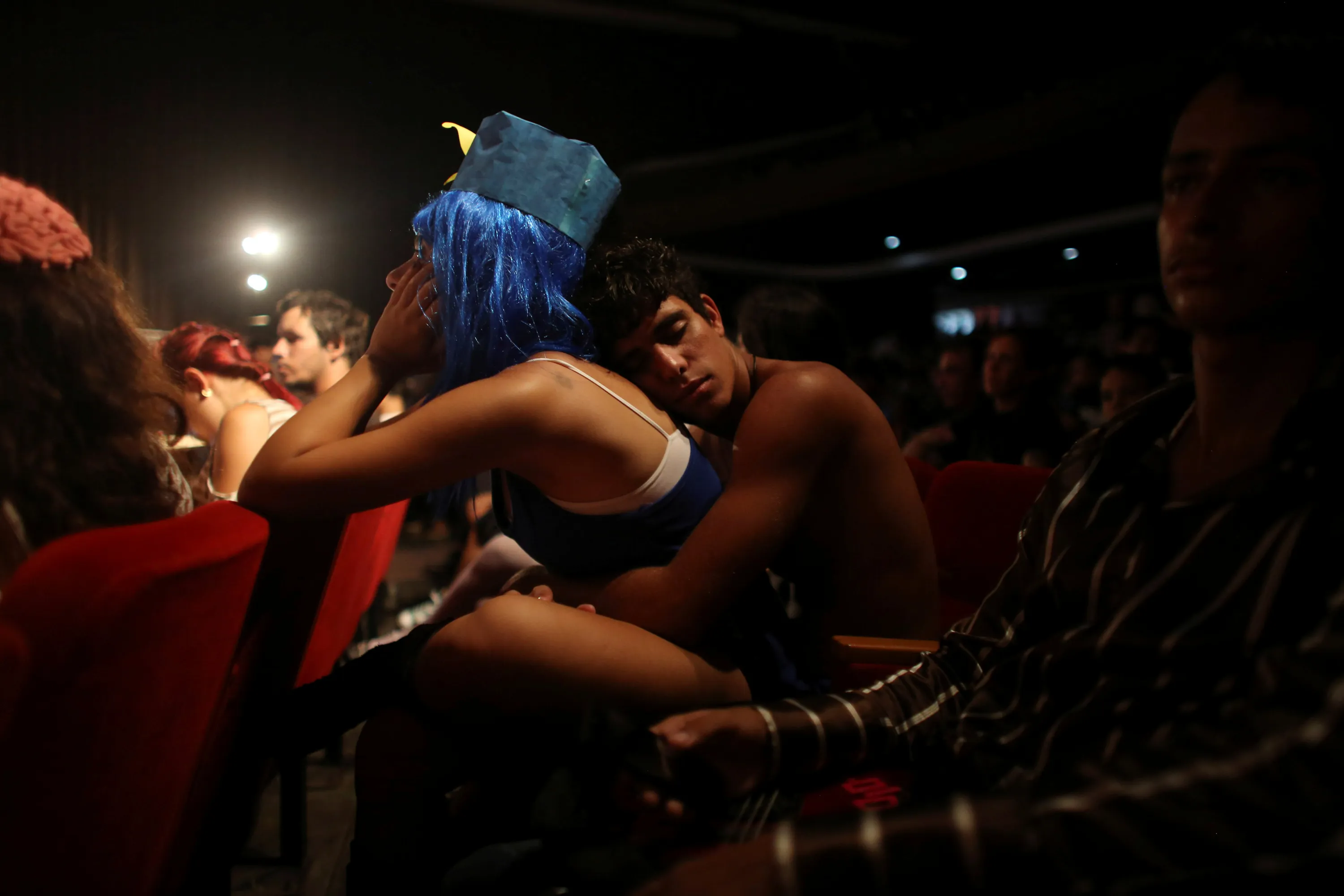 A couple sit at a cinema where the Cuban Otaku festival is taking place in Havana, Cuba, July 24, 2016. (Photo by Alexandre Meneghini/Reuters)
