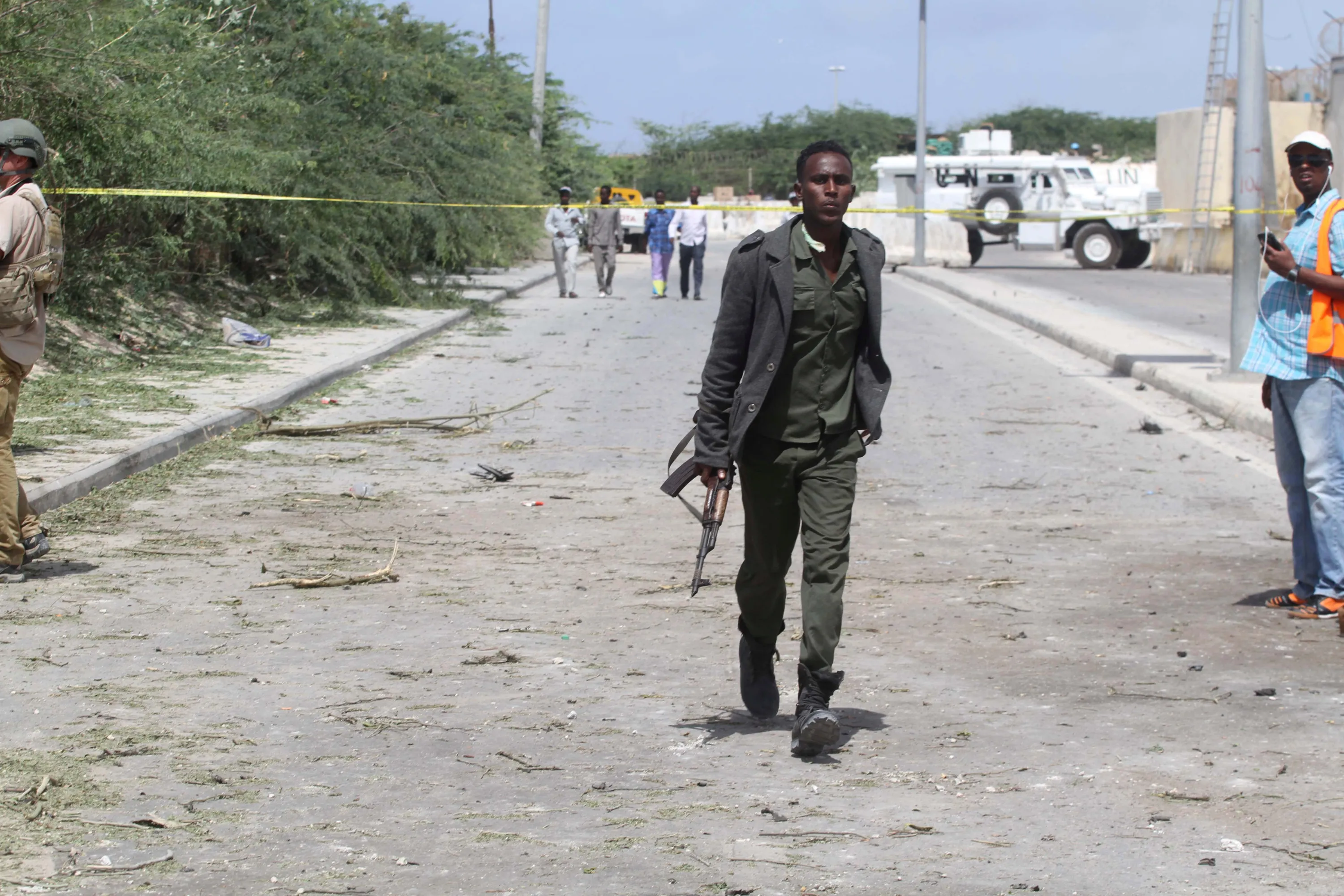 A policeman runs towards the scene of a suicide bombing near the African Union's main peacekeeping base in Mogadishu, Somalia, July 26, 2016. (Photo by Ismail Taxta/Reuters)