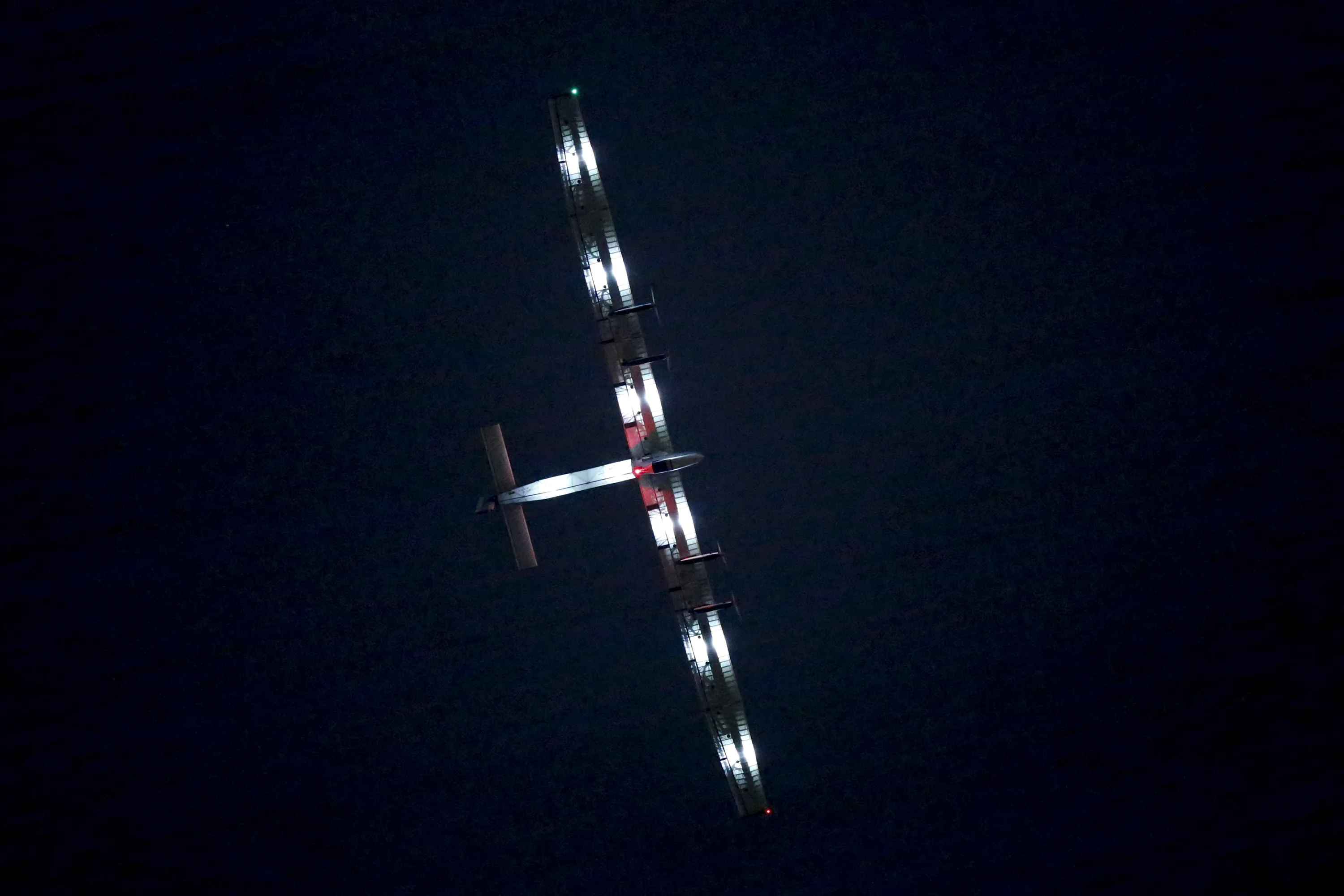 The Solar Impulse 2, a solar powered plane, circles above Nagoya airport in Japan before a planned landing, June 1, 2015. (Photo by Thomas Peter/Reuters)