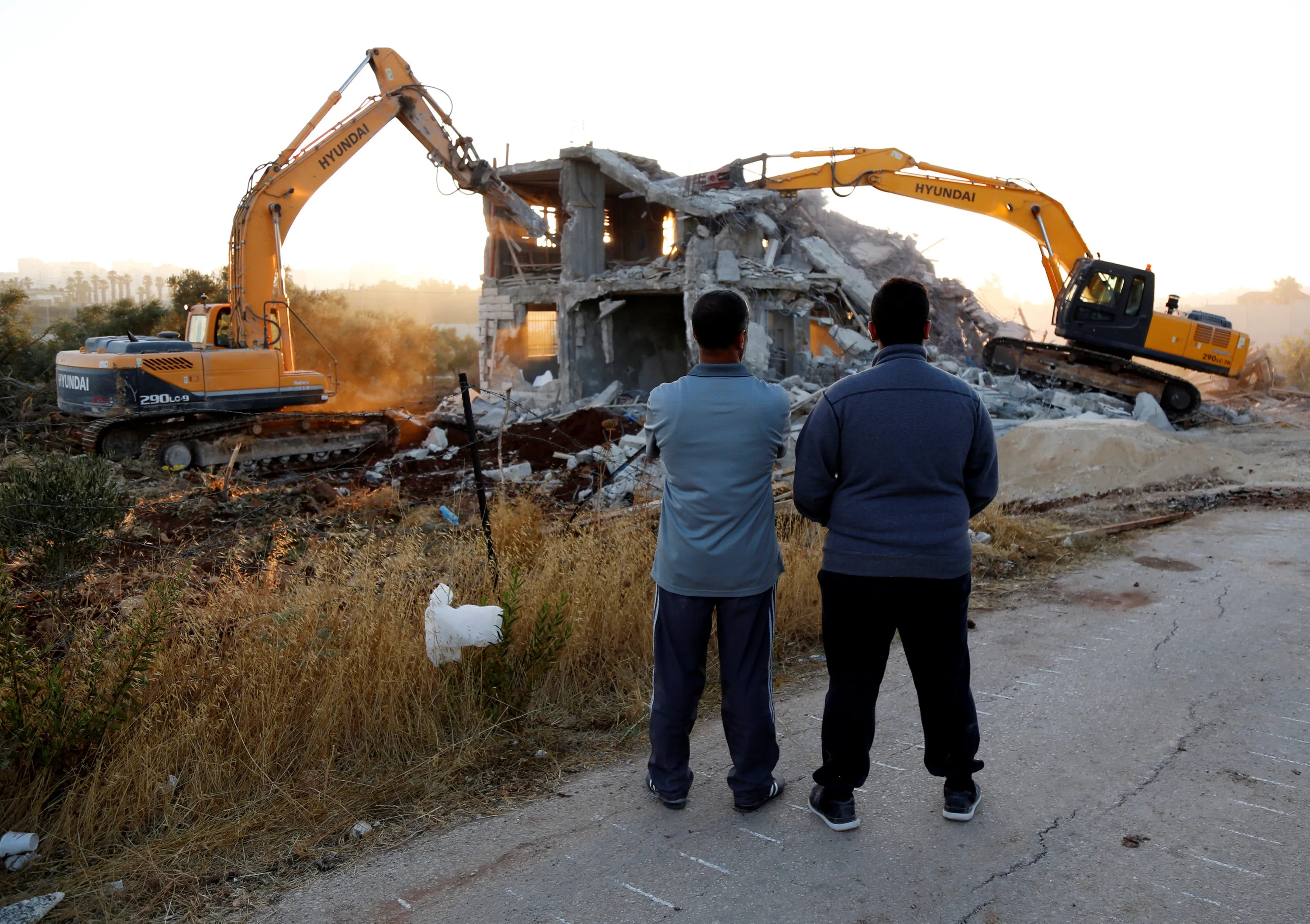 Palestinians watch as Israeli machinery demolish a Palestinian house in the West Bank village of Qalandia near Ramallah July 26, 2016. Israeli authorities demolished a dozen Palestinian homes in Qalandia, according to Palestinian sources. Witnesses added that shortly after midnight, a convoy of dozens of military vehicles and Israeli bulldozers stormed the resort, before demolishing 11 houses. (Photo by Mohamad Torokman/Reuters)