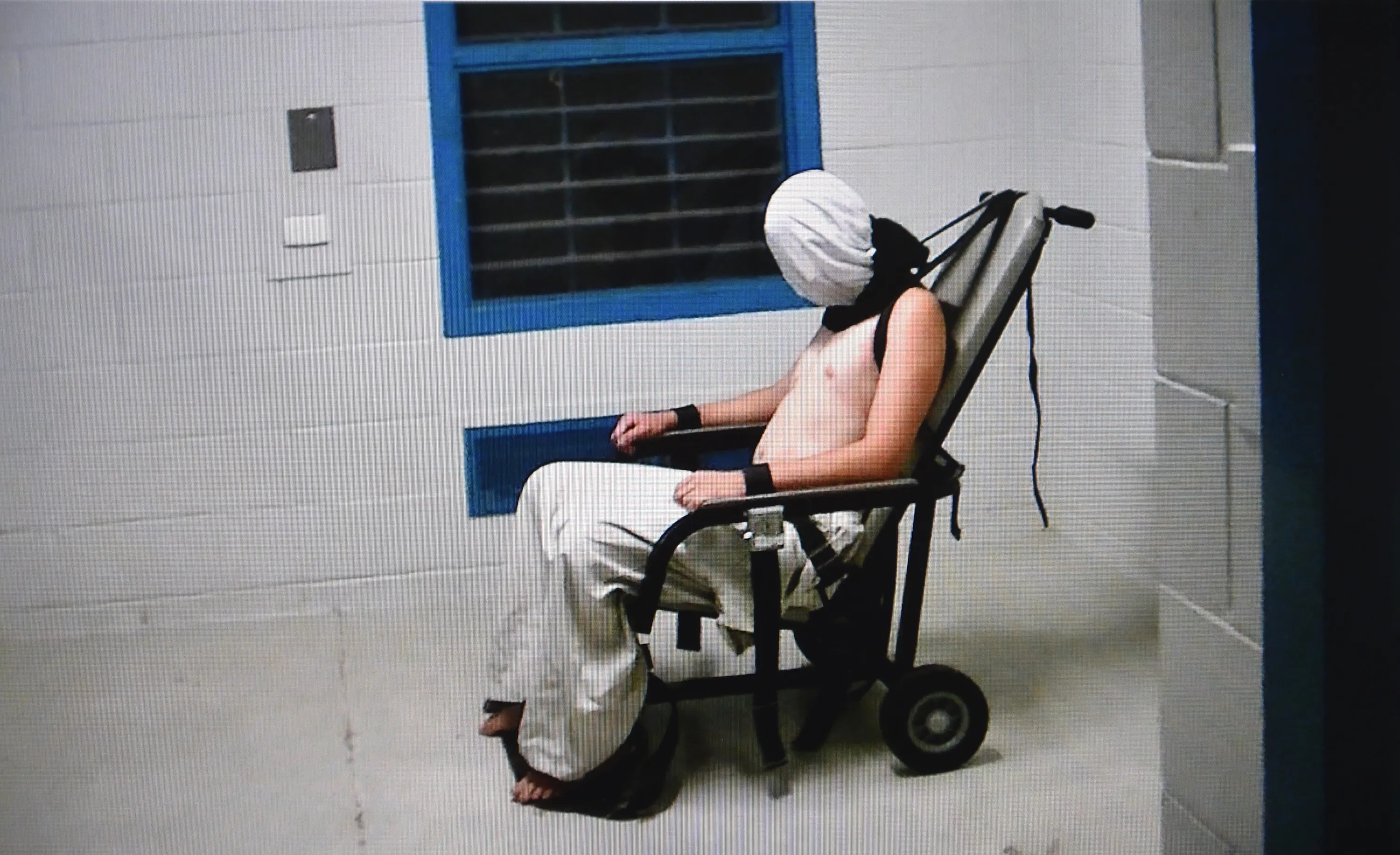 This frame grab from Australian Broadcasting Corporation's (ABC) Four Corners program broadcast in Australia on July 25, 2016 and released on July 26, 2016 allegedly shows a teenage boy hooded and strapped into a chair at a youth detention centre in the Northern Territory city of Darwin. The Australian government ordered an inquiry on July 26 after graphic evidence emerged of prison guards assaulting teenage boys, with one shown hooded and shackled in scenes likened to Guantanamo Bay. (Photo by AFP Photo/Australian Broadcasting Corp)