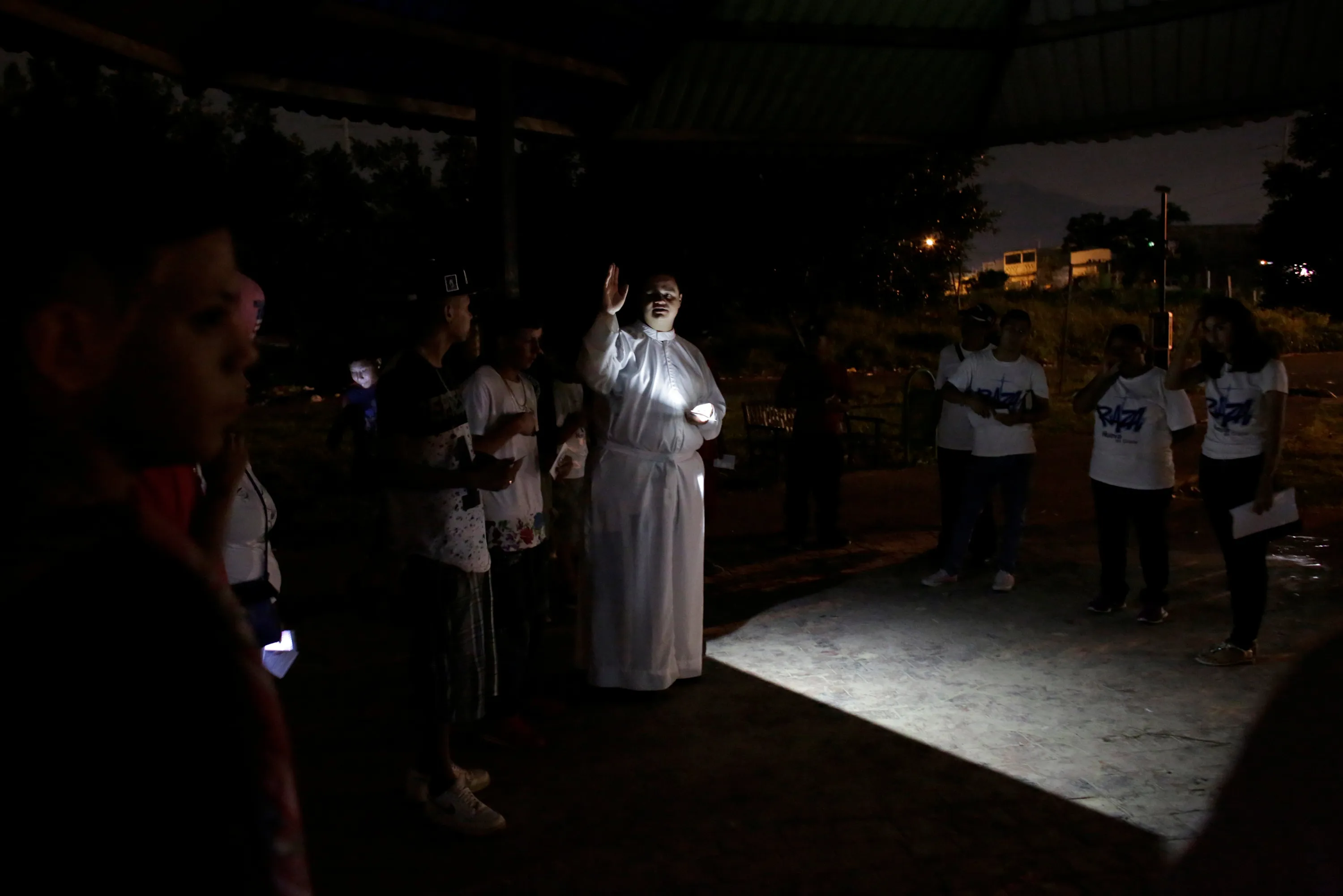 An aspiring Catholic priest Jose Luis Guerra, a member of Raza Nueva in Christ, a project of the archdiocese of Monterrey, blesses young people during a visit to a neighbourhood in the municipality of Juarez, on the outskirts of Monterrey, Mexico, May 30, 2016. (Photo by Daniel Becerril/Reuters)