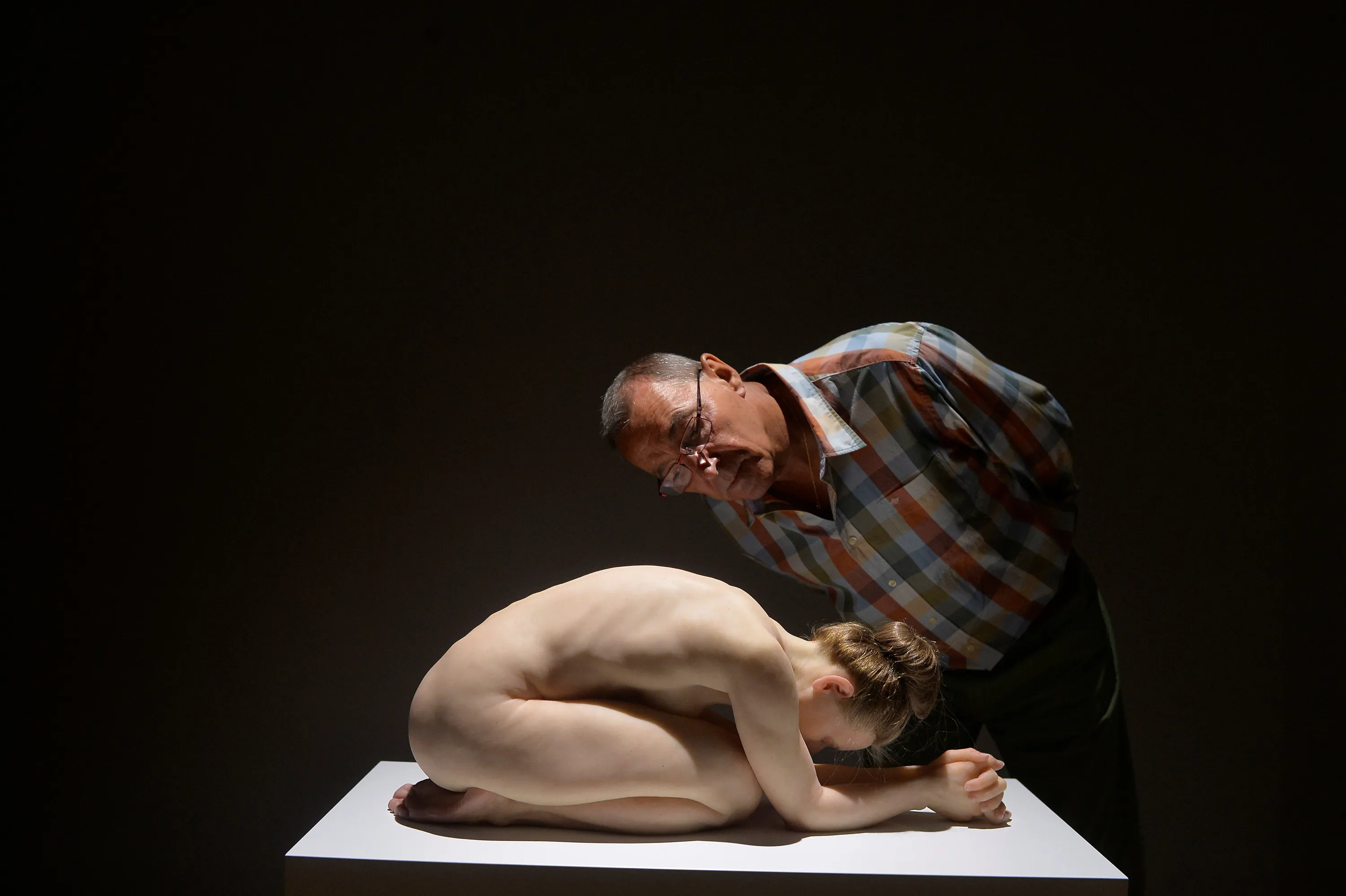 A visitor observes the sculpture “Kneeling Woman” by Australian artist Sam Jinks, at the Hyperrealist Sculpture 1973-2016 exhibition in the Museum of Bellas Artes in Bilbao, northern Spain, July 27, 2016. (Photo by Vincent West/Reuters)