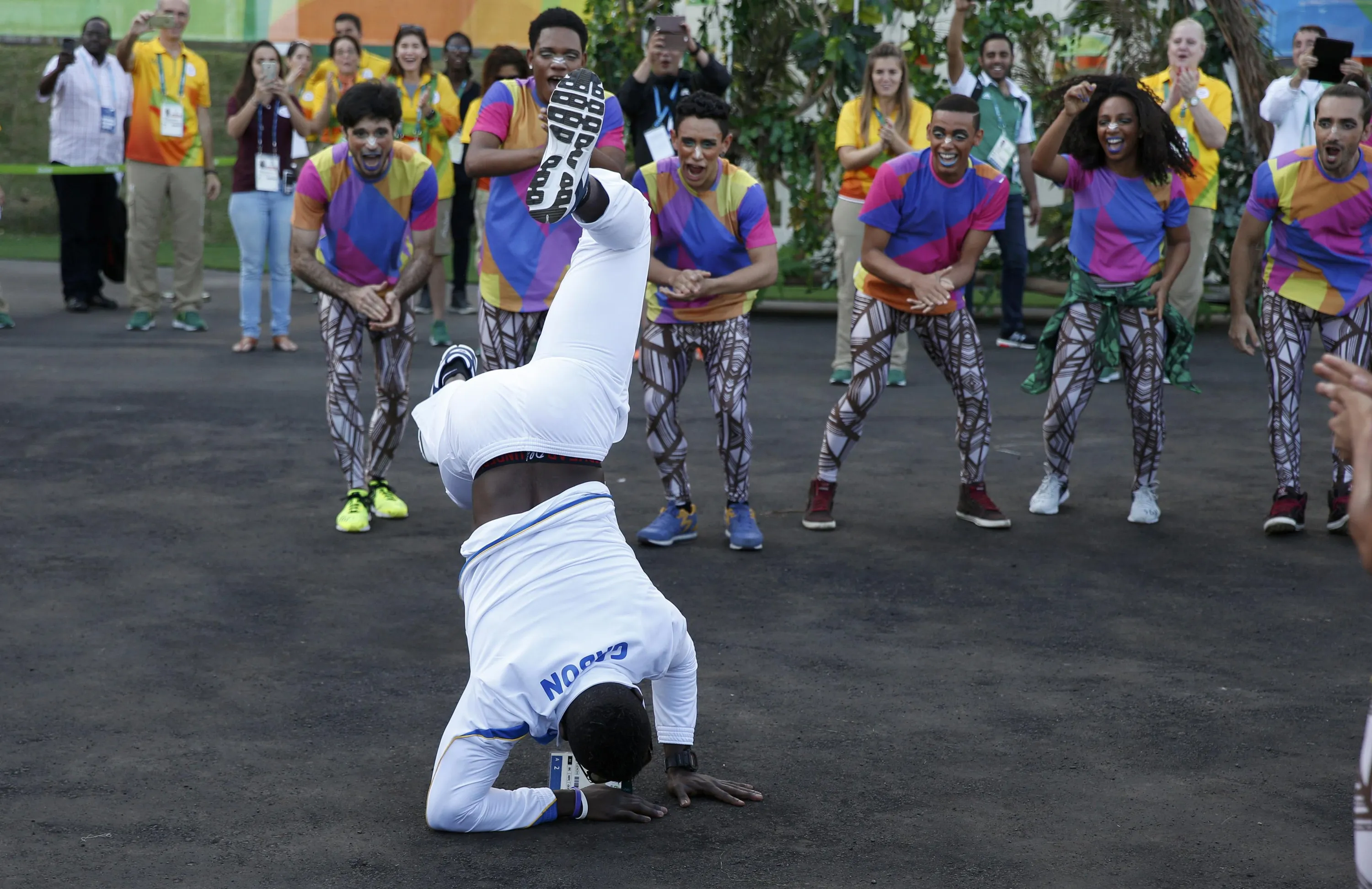 2016 Rio Olympics, Olympic Village, Rio de Janeiro, Brazil on July 30, 2016. An athlete of Gabon dances during their official welcome ceremony. (Photo by Athit Perawongmetha/Reuters)