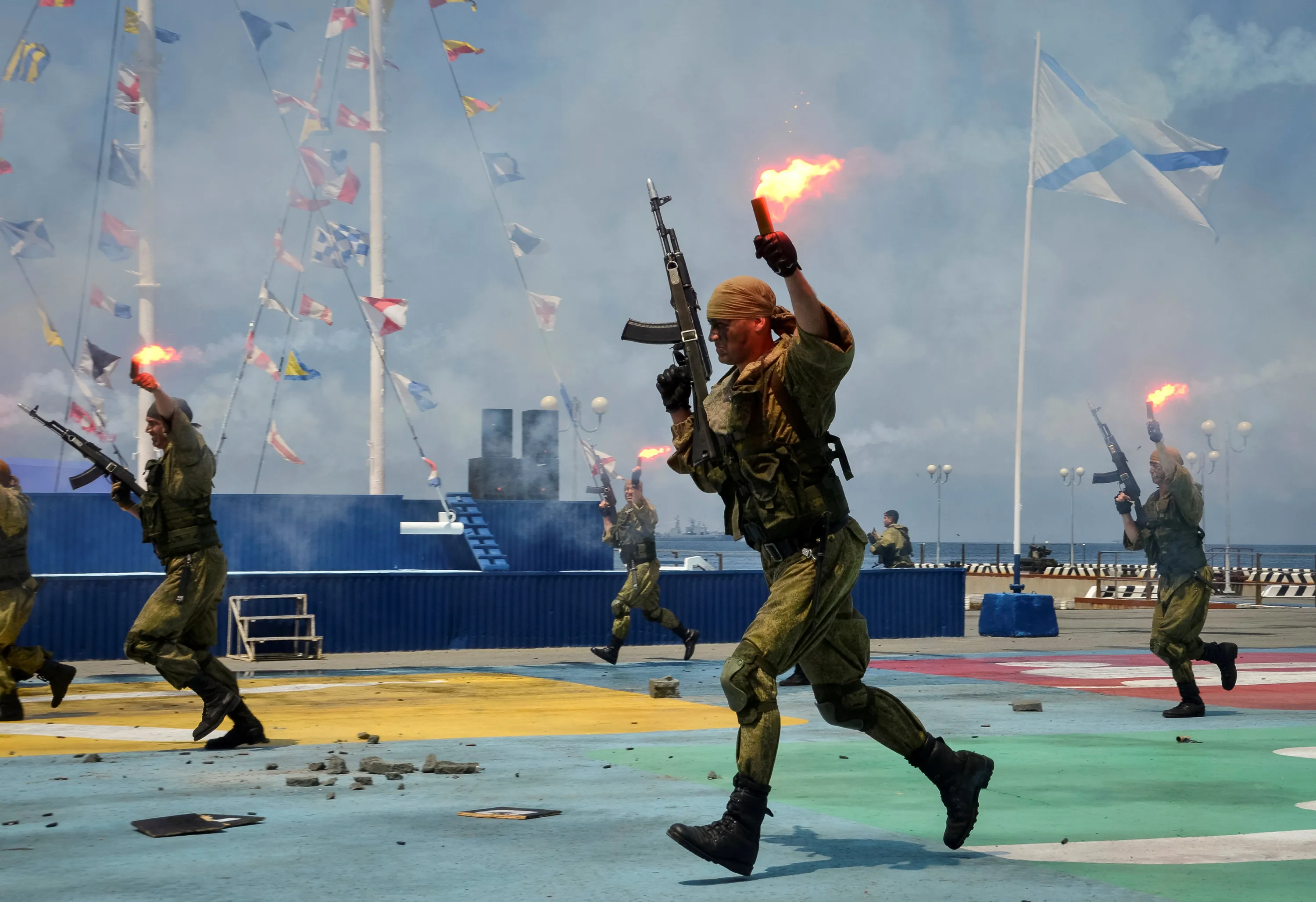 Russian marines run during a rehearsal for the Navy Day parade in the far eastern port of Vladivostok, Russia, July 30, 2016. (Photo by Yuri Maltsev/Reuters)