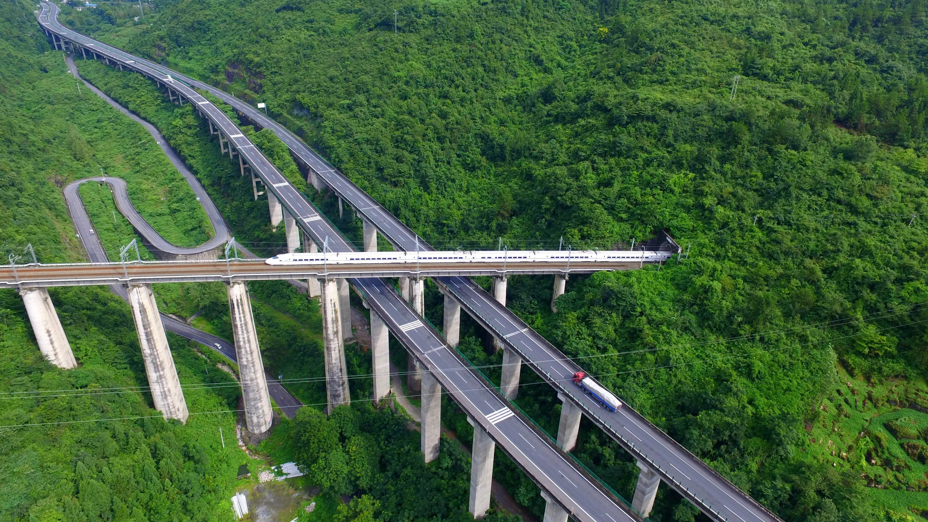 A high-speed train crosses a viaduct on the Yichang-Wanzhou railway in Enshi, China on July 28, 2016. (Photo by Xinhua/Barcroft Images)