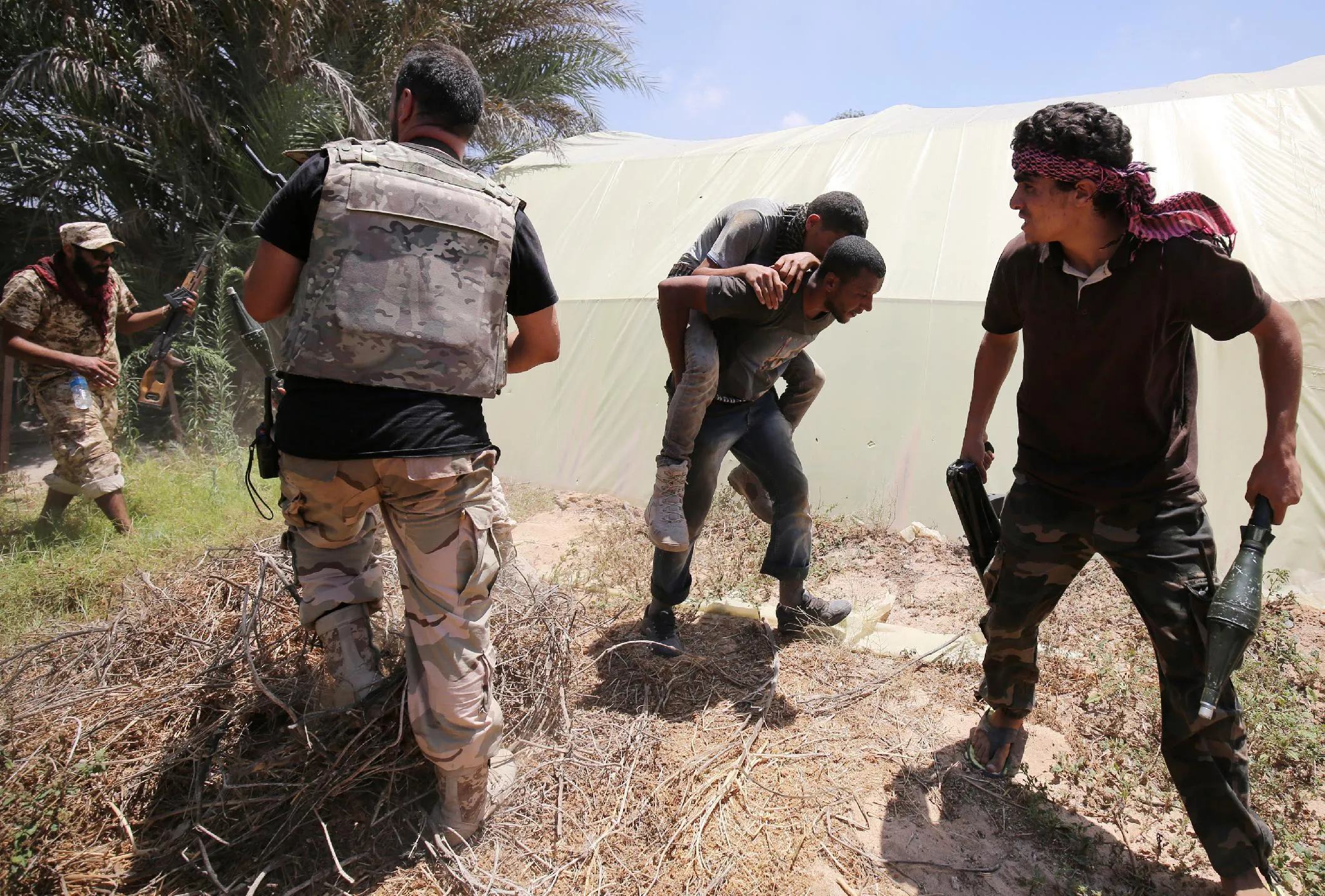 A fighter of Libyan forces allied with the U.N.-backed government carries a wounded fighter during a battle with Islamic State fighters in Sirte, Libya, July 31, 2016. (Photo by Goran Tomasevic/Reuters)