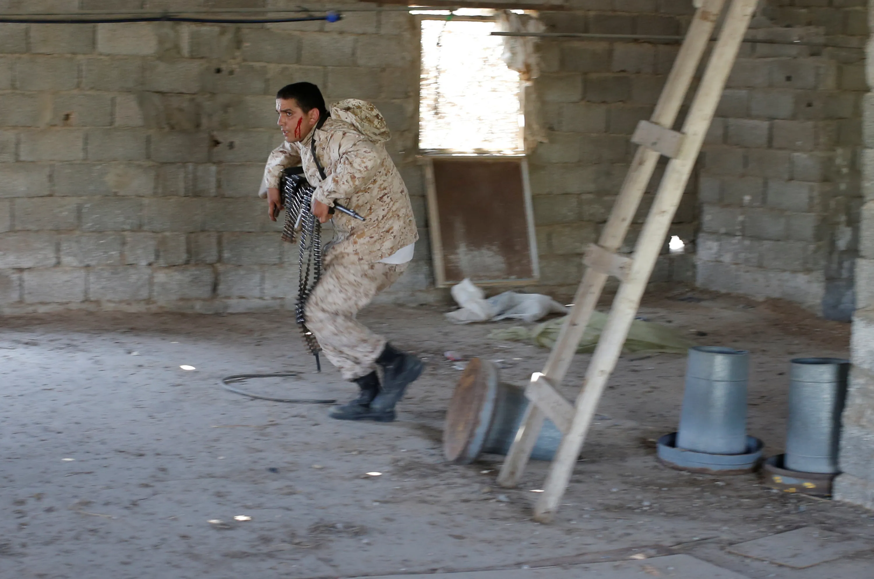 A wounded fighter of Libyan forces allied with the U.N.-backed government runs for cover during a battle with Islamic State fighters in Sirte, Libya, July 31, 2016. (Photo by Goran Tomasevic/Reuters)