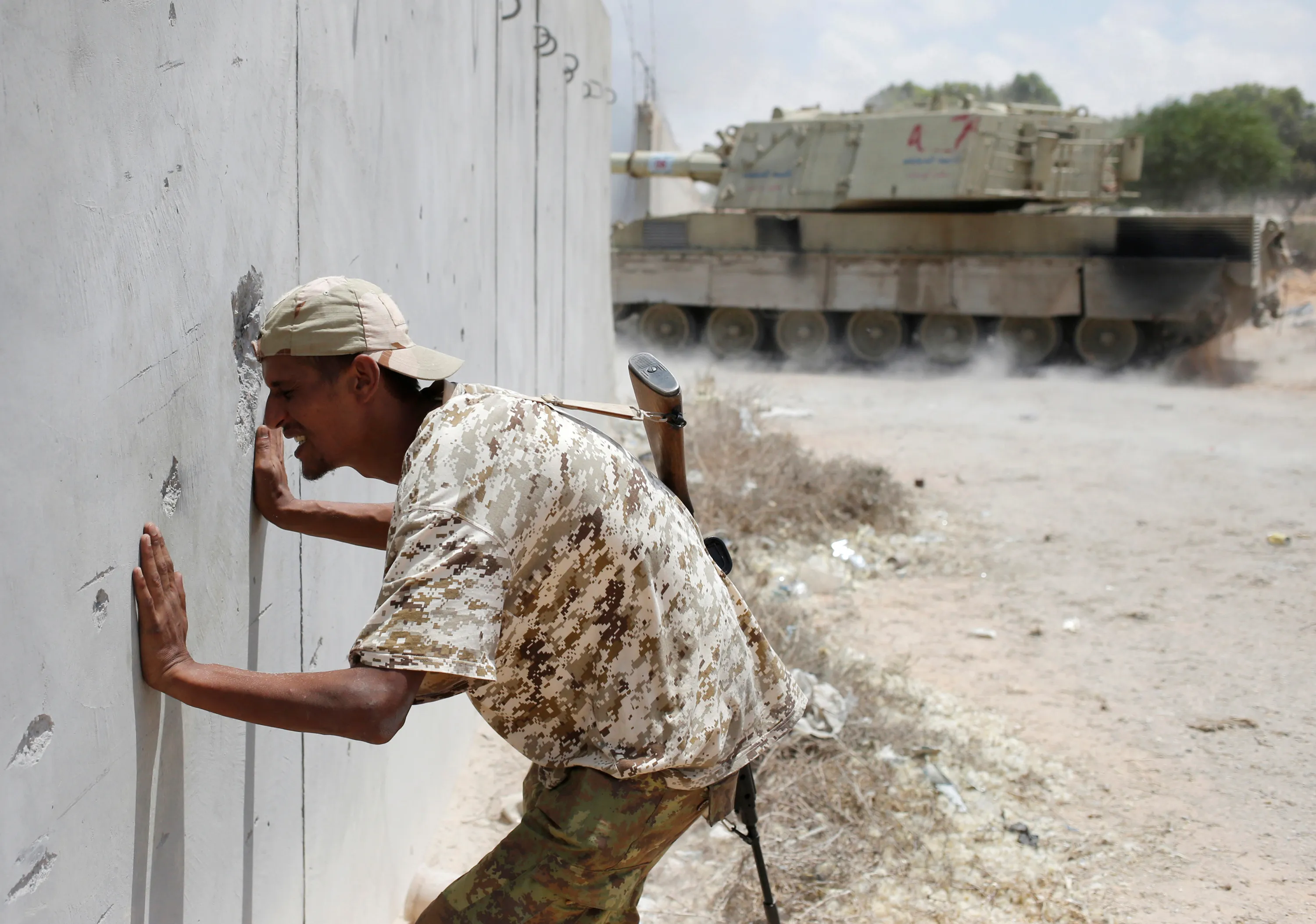 A fighter of Libyan forces allied with the U.N.-backed government looks through a hole in a wall as a self-propelled artillery gun fires at Islamic State fighters during a battle in Sirte, Libya, July 31, 2016. (Photo by Goran Tomasevic/Reuters)
