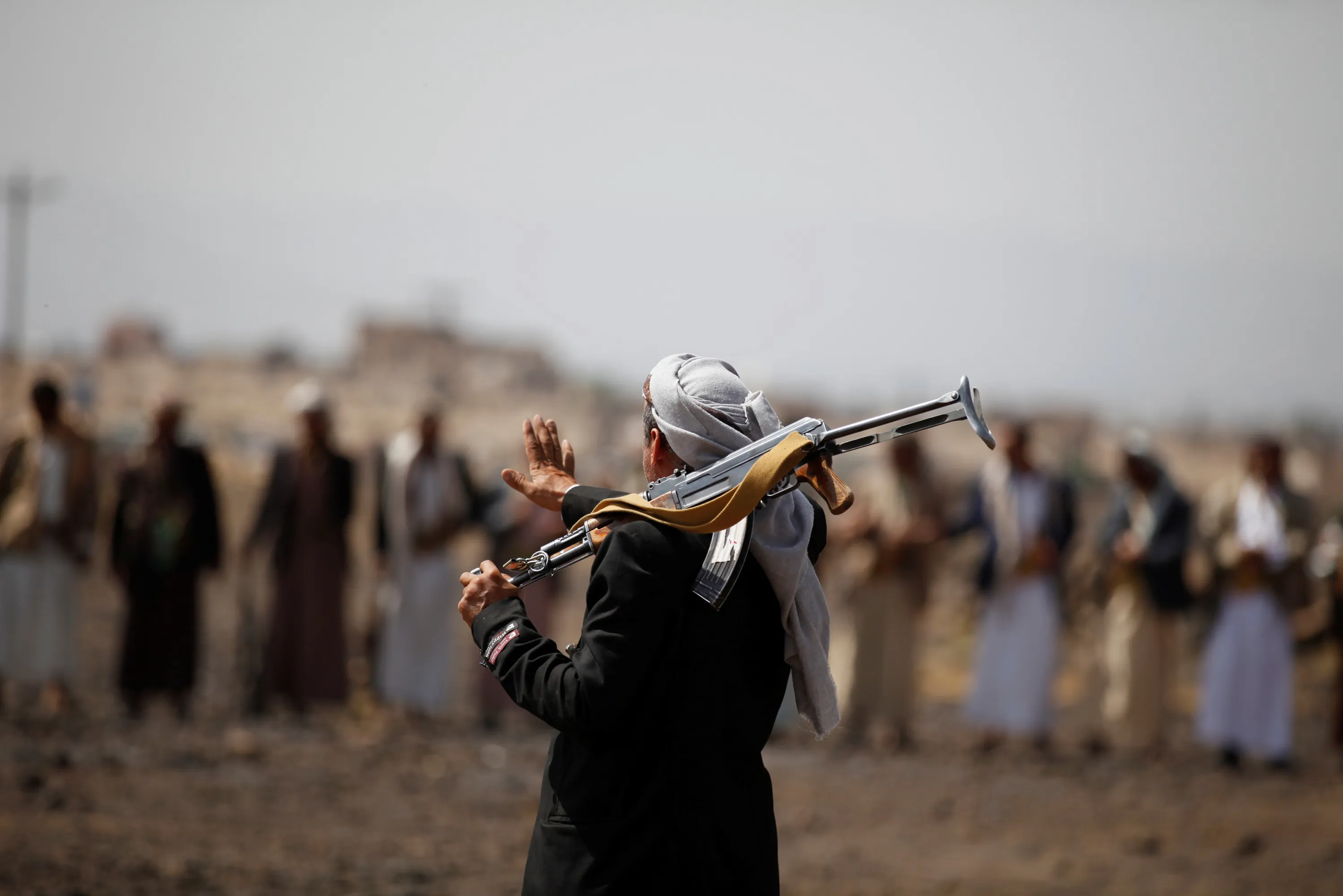 A tribesman gestures to fellow tribesmen as they attend a pro-Houthi tribal gathering in a rural area near Sanaa, Yemen July 21, 2016. (Photo by Khaled Abdullah/Reuters)