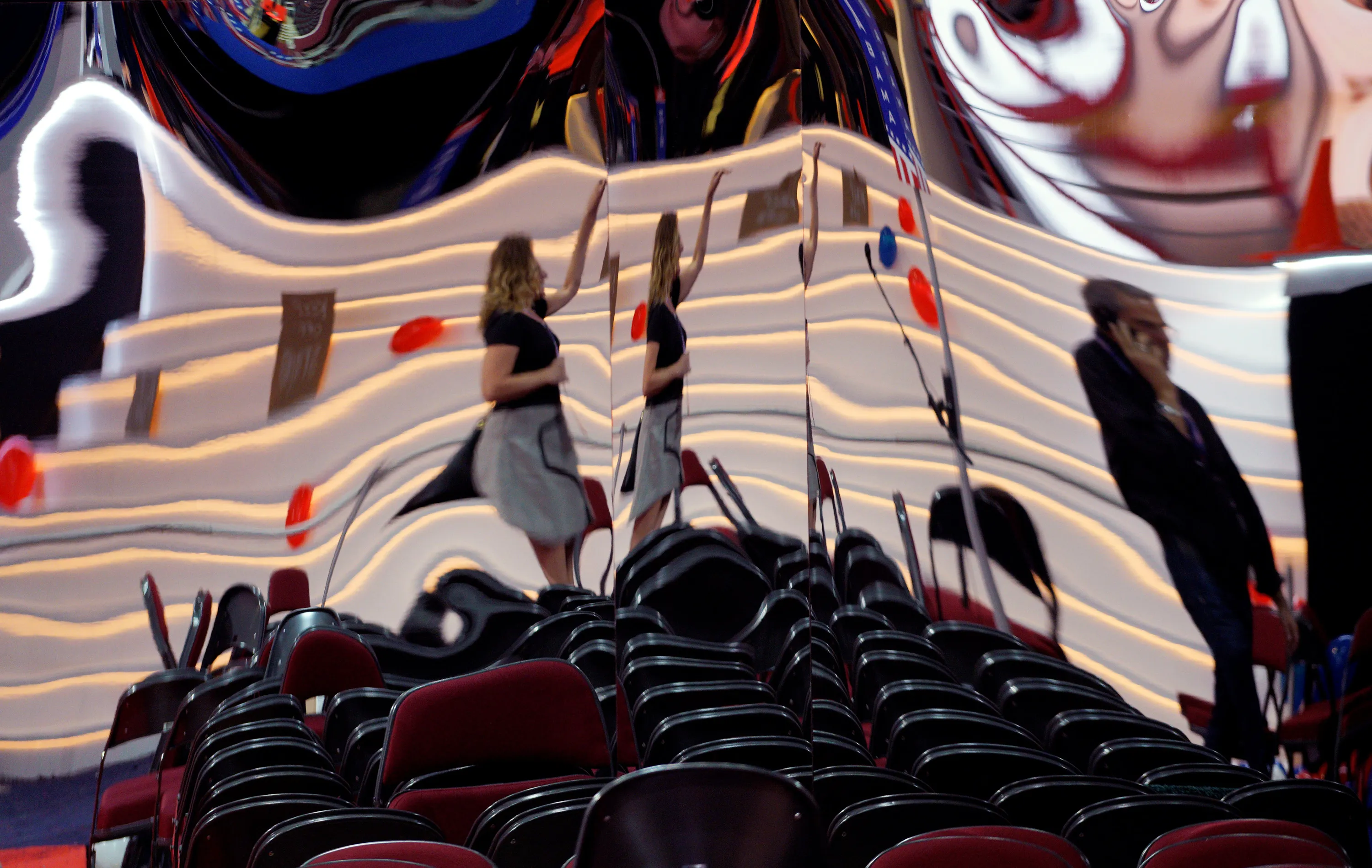People are reflected in mirrors on the floor of the Republican National Convention in Cleveland, Ohio, U.S., July 15, 2016. (Photo by Rick Wilking/Reuters)