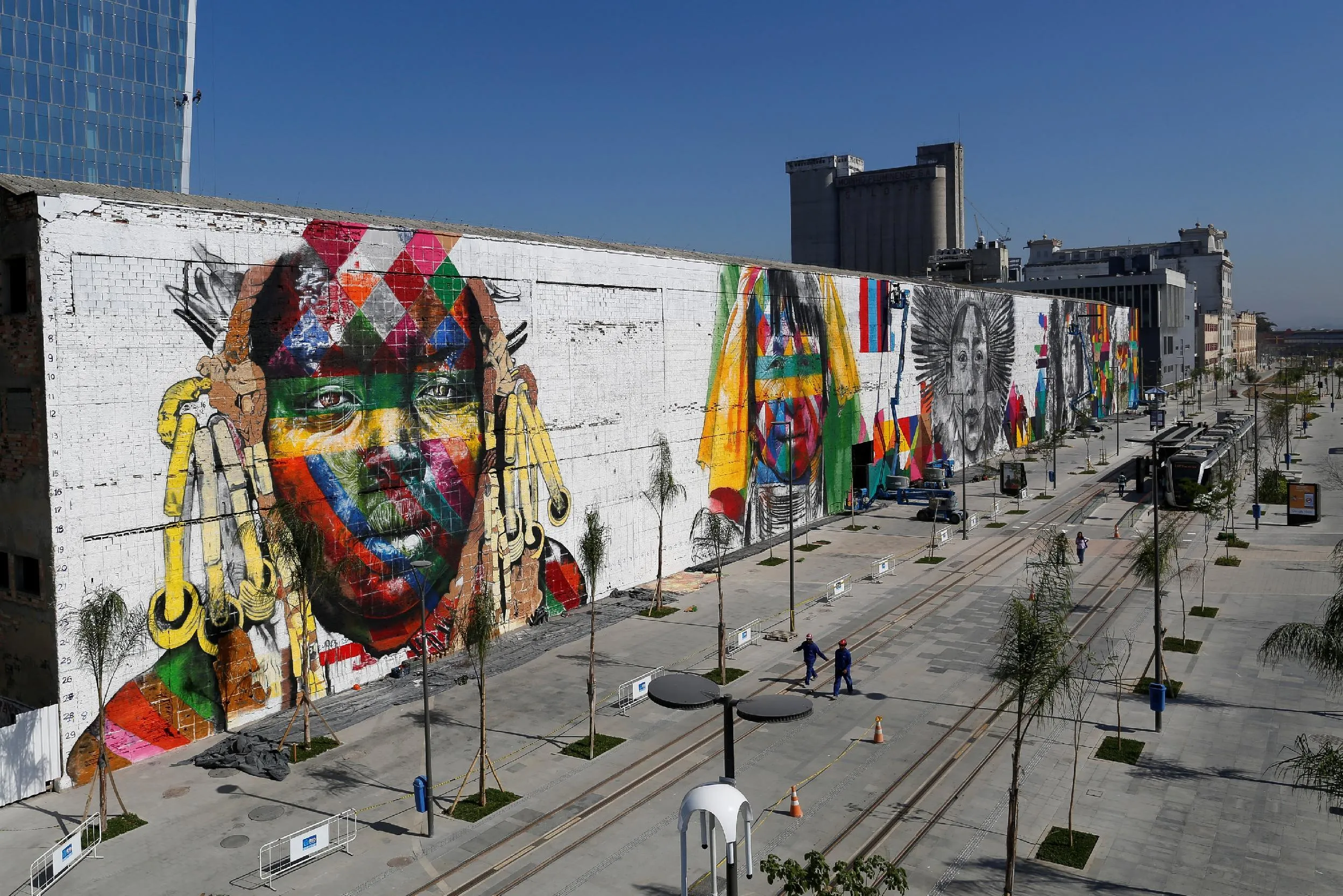 A massive mural is seen on Rio's Olympic Boulevard featuring native peoples from five continents ahead of the Rio 2016 Olympic Games in Rio de Janeiro, Brazil, July 14, 2016. (Photo by Bruno Kelly/Reuters)
