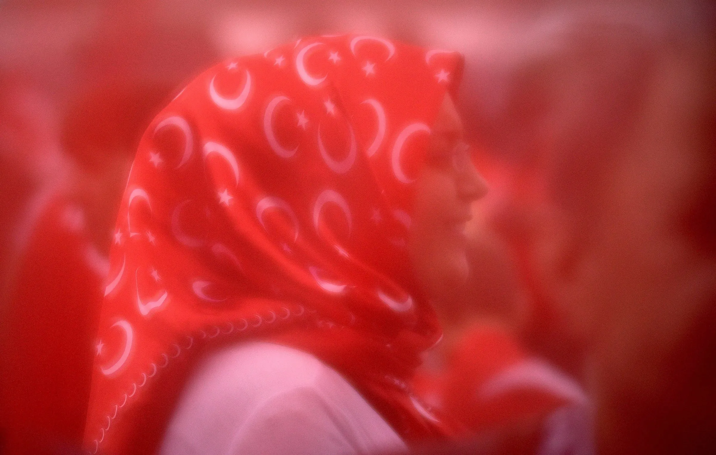 A supporter wearing a headscarf of the Turkish flag gathers with fellow protestors ahead of a pro-Erdogan rally in Cologne, Germany, 31 July 2016. Extra police have been deployed to Cologne where tens of thousands of protestors are expected to participate in the pro-Erdogen rally, in support of the Turkish President. (Photo by Henning Kaiser/EPA)