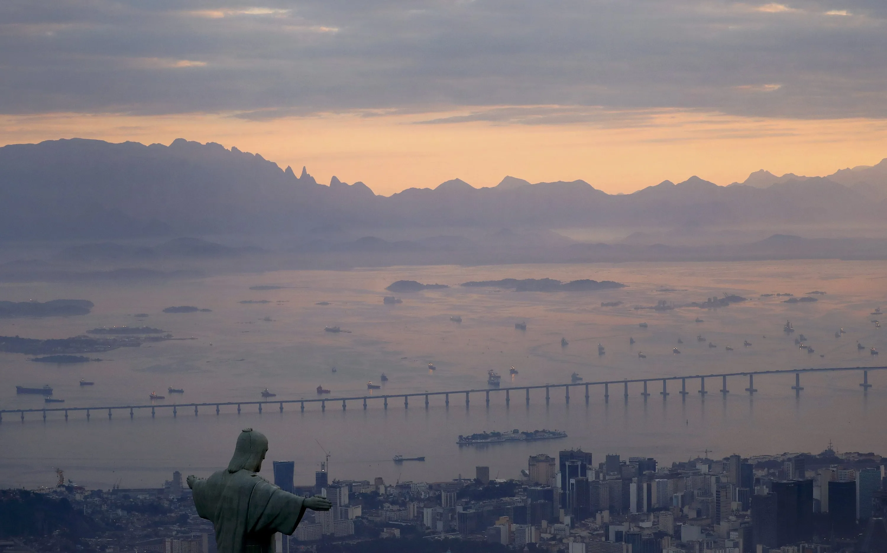 Jesus Christ the Redeemer during sunrise in Rio de Janeiro, Brazil, August 2, 2016. Christ the Redeemer is an Art Deco statue of Jesus Christ in Rio de Janeiro, Brazil, created by Polish-French sculptor Paul Landowski and built by the Brazilian engineer Heitor da Silva Costa, in collaboration with the French engineer Albert Caquot. The face was created by the Romanian artist Gheorghe Leonida. The statue is 30 metres (98 ft) tall, not including its 8-metre (26 ft) pedestal, and its arms stretch 28 metres (92 ft) wide. The statue weighs 635 metric tons (625 long, 700 short tons), and is located at the peak of the 700-metre (2,300 ft) Corcovado mountain in the Tijuca Forest National Park overlooking the city of Rio. A symbol of Christianity across the world, the statue has also become a cultural icon of both Rio de Janeiro and Brazil, and is listed as one of the New Seven Wonders of the World. It is made of reinforced concrete and soapstone, and was constructed between 1922 and 1931. (Photo by Kai Pfaffenbach/Reuters)