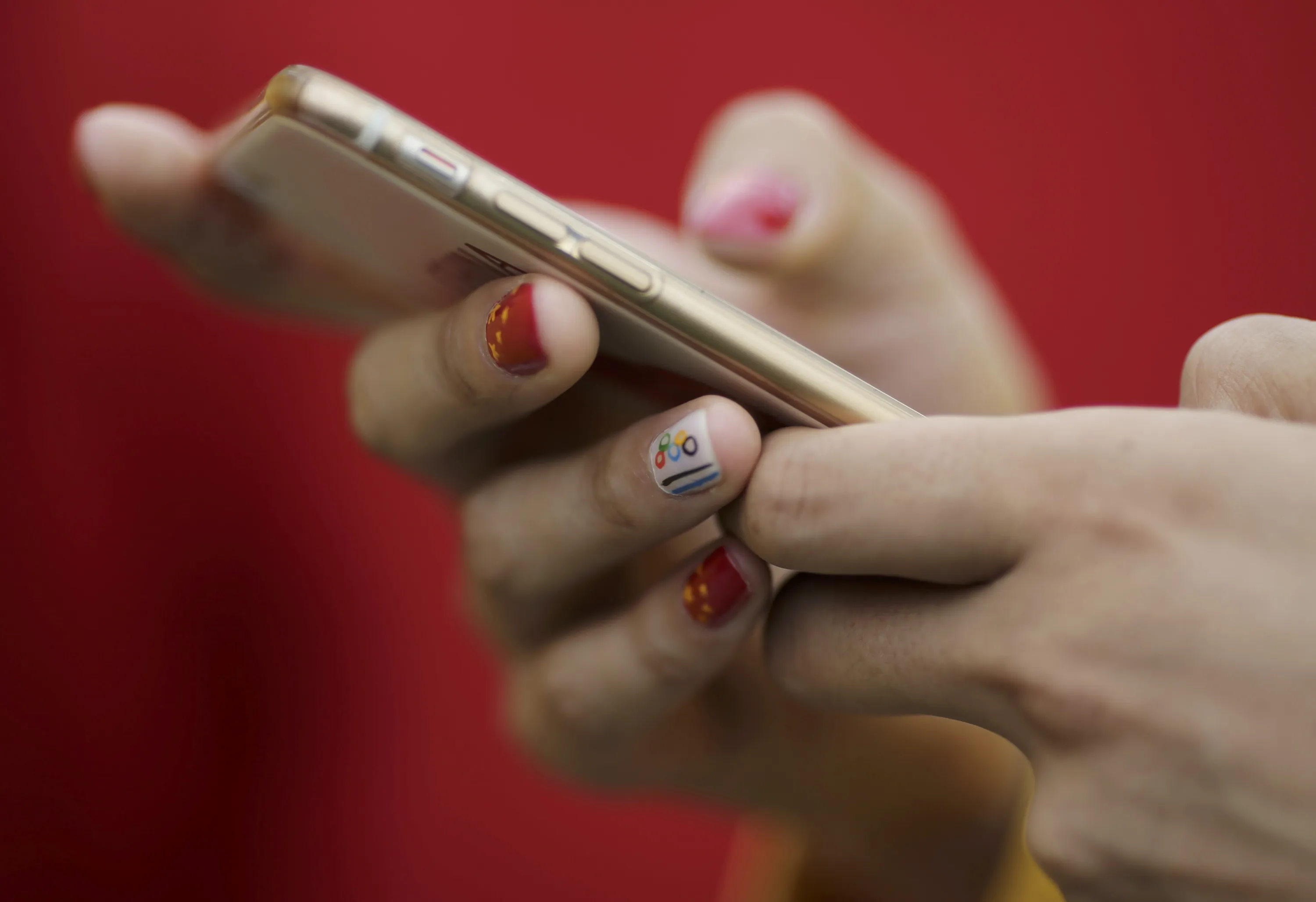 A Chinese athlete with painted nails uses a phone in Rio de Janeiro, Brazil on August 3, 2016. (Photo by Alkis Konstantinidis/Reuters)