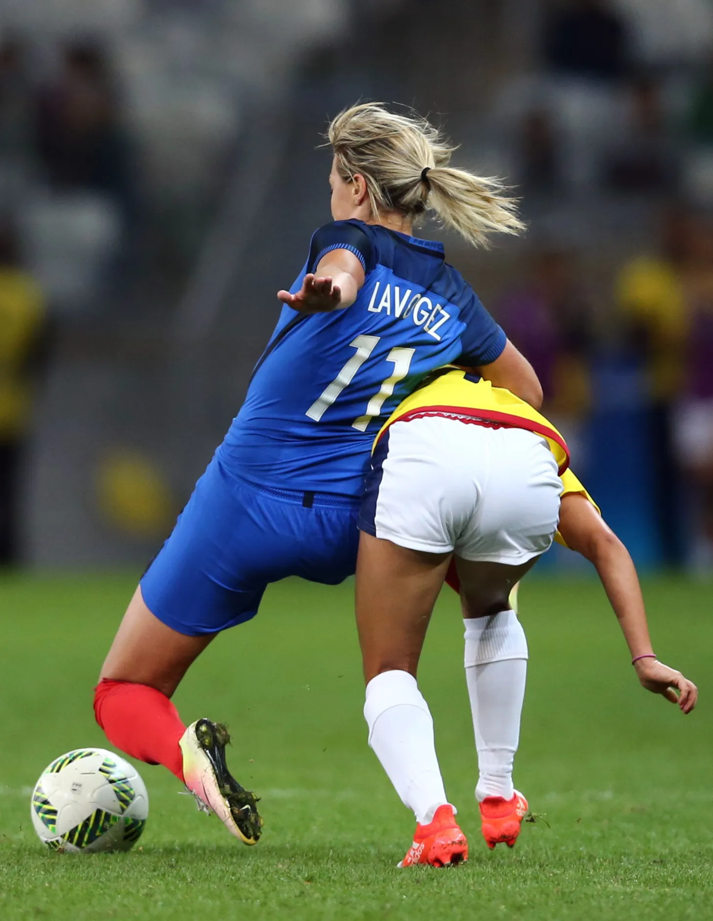 2016 Rio Olympics, Soccer, Preliminary, Women's First Round, Group G France vs Colombia, Mineirao, Belo Horizonte, Brazil on August 3, 2016. Claire Lavogez (FRA) of France and Tatiana Ariza (COL) of Colombia in action. (Photo by Mariana Bazo/Reuters)