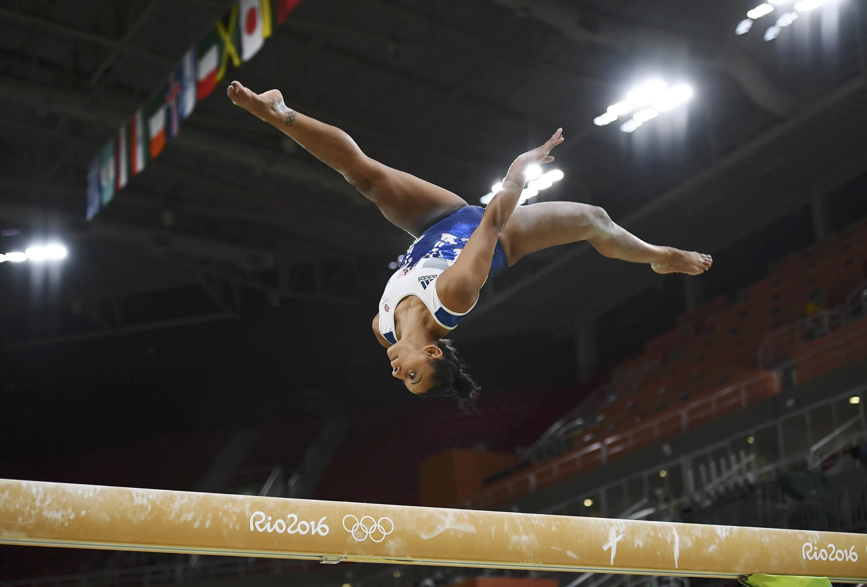 2016 Rio Olympics, Gymnastics training, Rio Olympic Arena, Rio de Janeiro, Brazil on August 4, 2016. Rebecca Downie (GBR) of United Kingdom trains on the beam. (Photo by Dylan Martinez/Reuters)