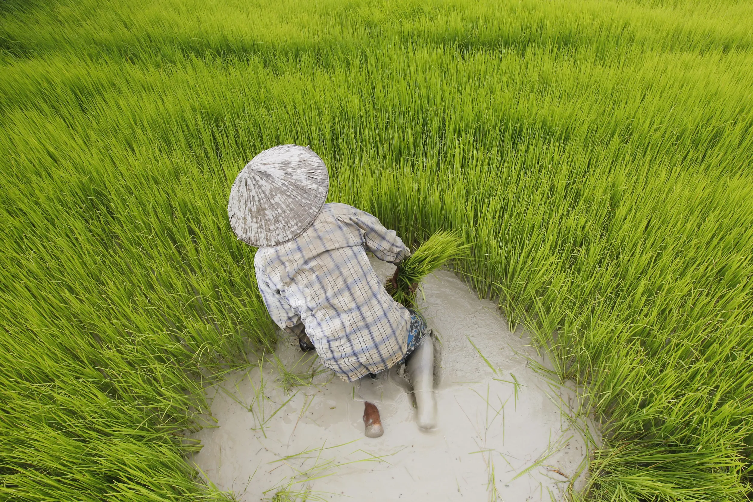 A Cambodian farmer works in a rice field on the outskirts of Phnom Penh, Cambodia, 04 August 2016. According to the Cambodia Rice Federation, a key reason for the decline in demand of Cambodian rice is the intense price pressure the commodity is facing due to an overabundance of supply in the rice export market. (Photo by Kith Serey/EPA)