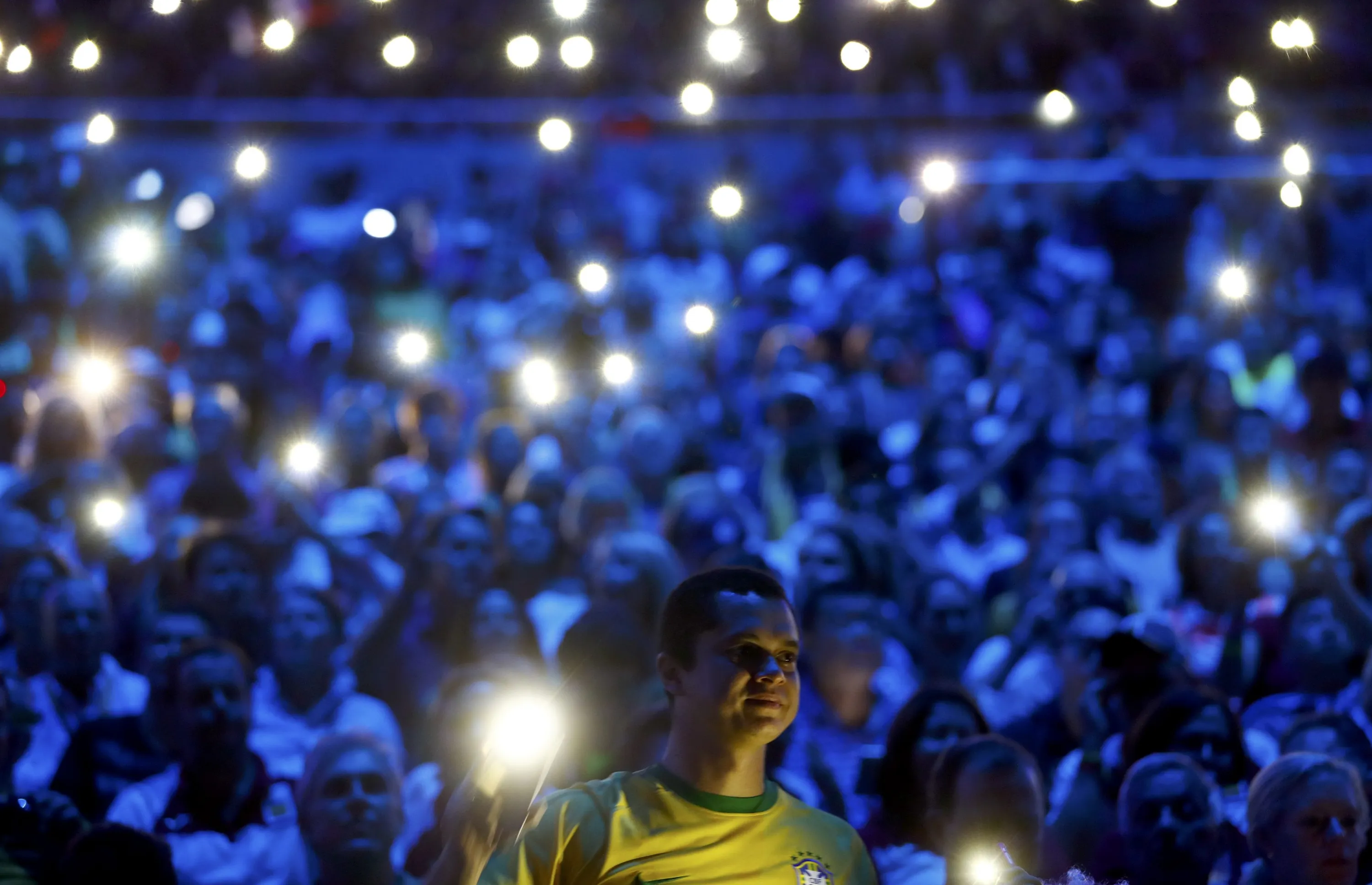 2016 Rio Olympics, Opening ceremony, Maracana, Rio de Janeiro, Brazil on August 5, 2016. Spectators use their mobile phones for illumination. (Photo by Kai Pfaffenbach/Reuters)