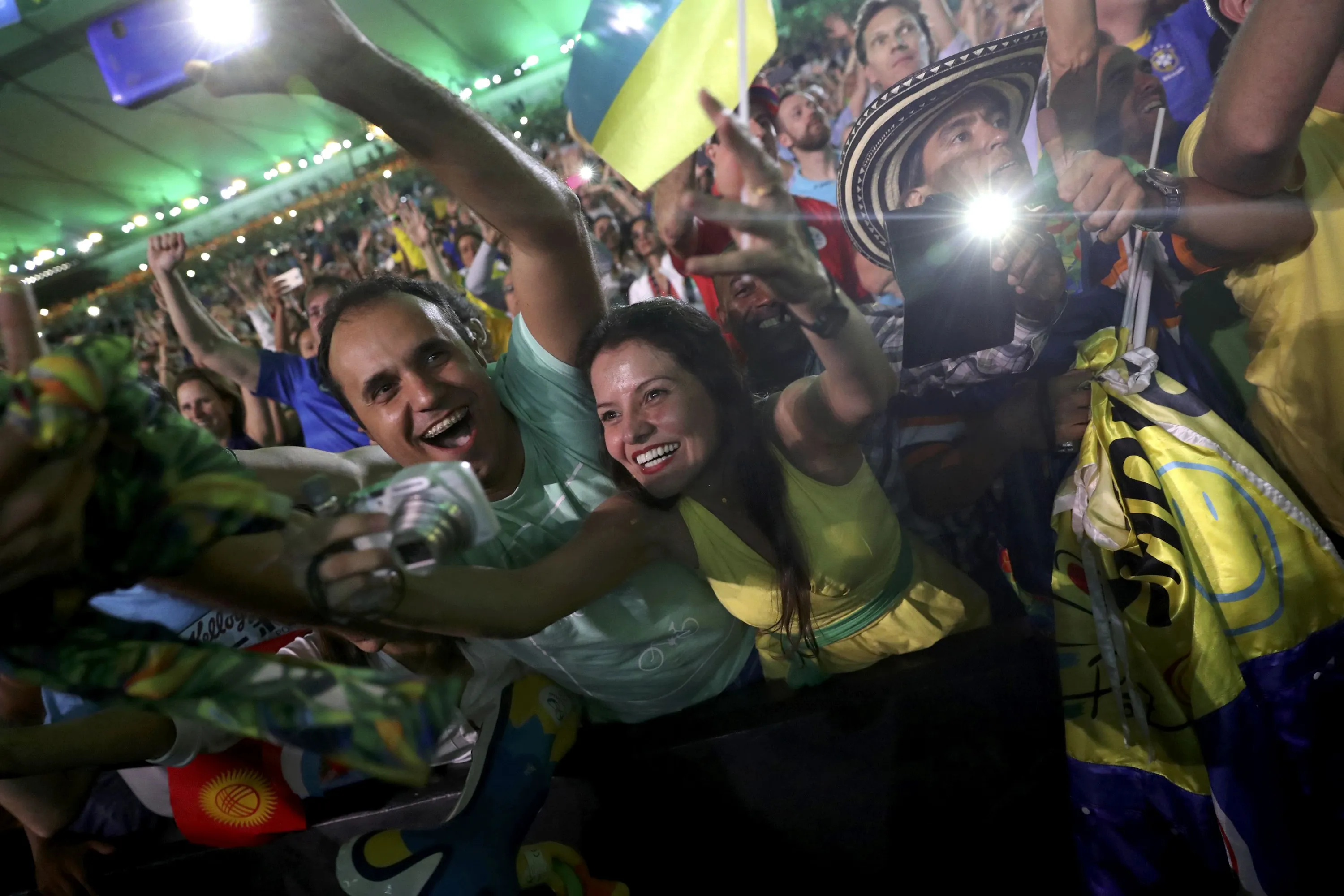 2016 Rio Olympics, Opening ceremony, Maracana, Rio de Janeiro, Brazil on August 5, 2016. Fans from Brazil celebrate in the stands during the opening ceremony. (Photo by Damir Sagolj/Reuters)