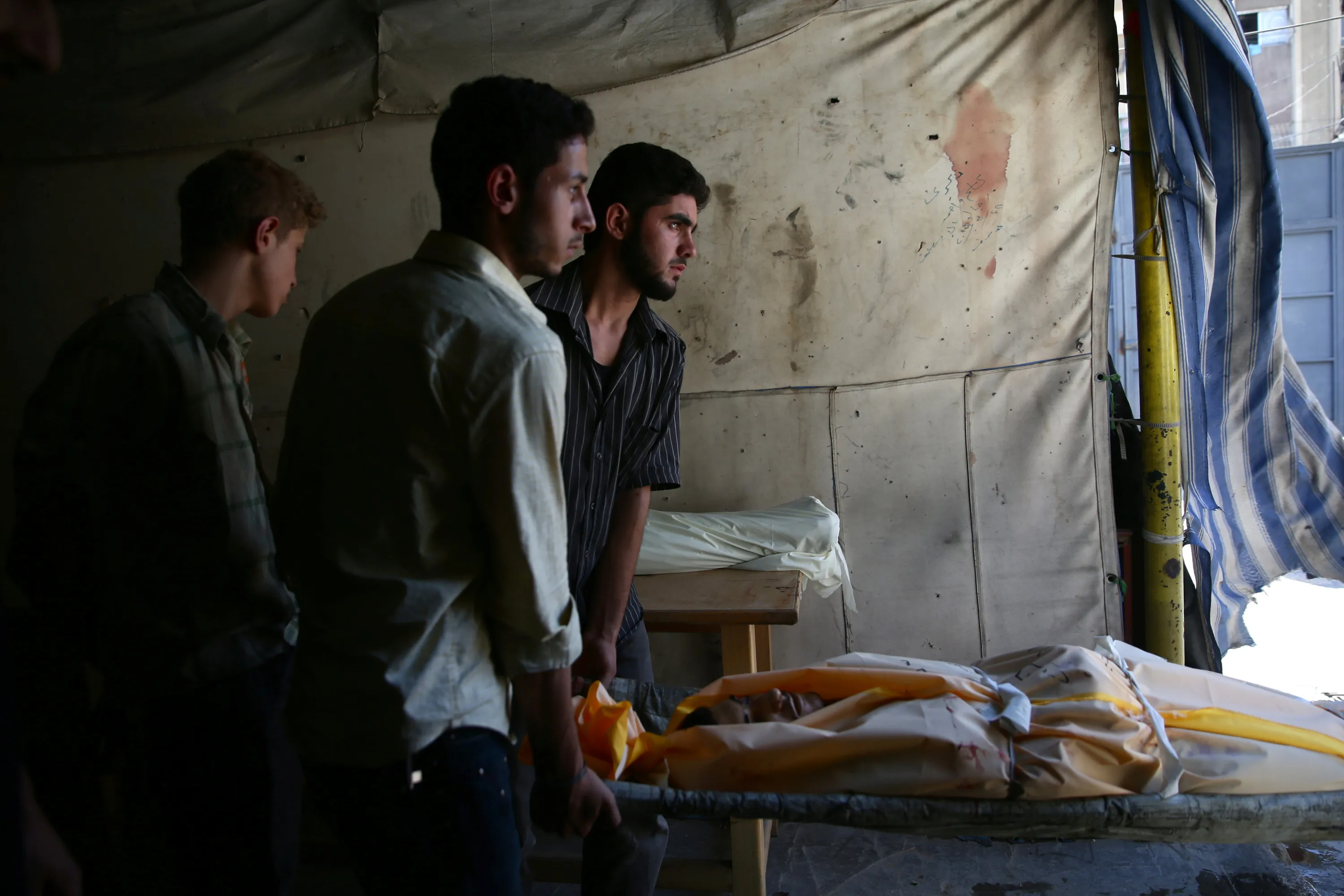 Men transport a body after shelling in the rebel held Douma neighborhood of Damascus, Syria July 21, 2016. (Photo by Bassam Khabieh/Reuters)