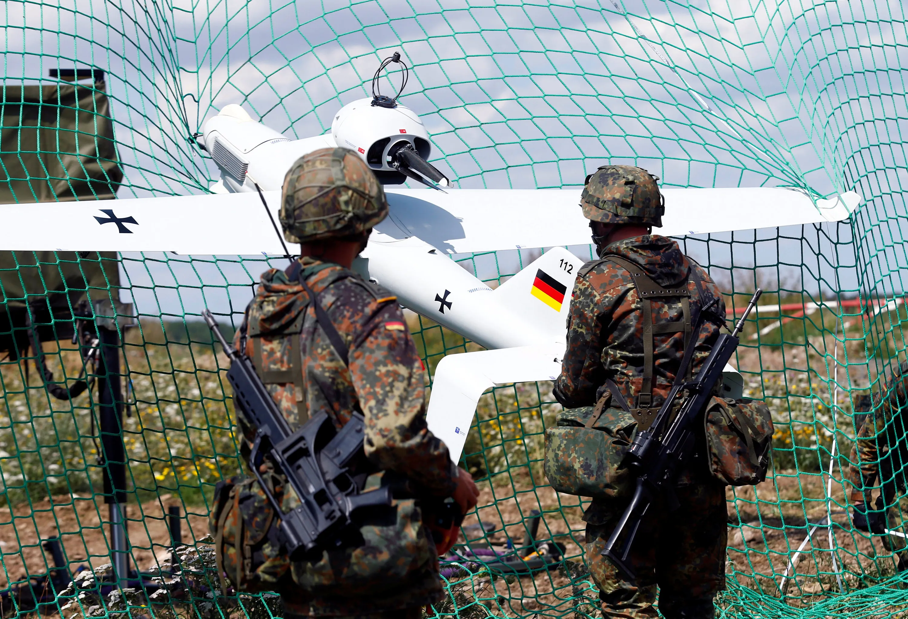 German soldiers remove a Luna drone from a net after its landing at the 13th reconnaissance battalion in Gotha, Germany, August 9, 2016. (Photo by Ralph Orlowski/Reuters)