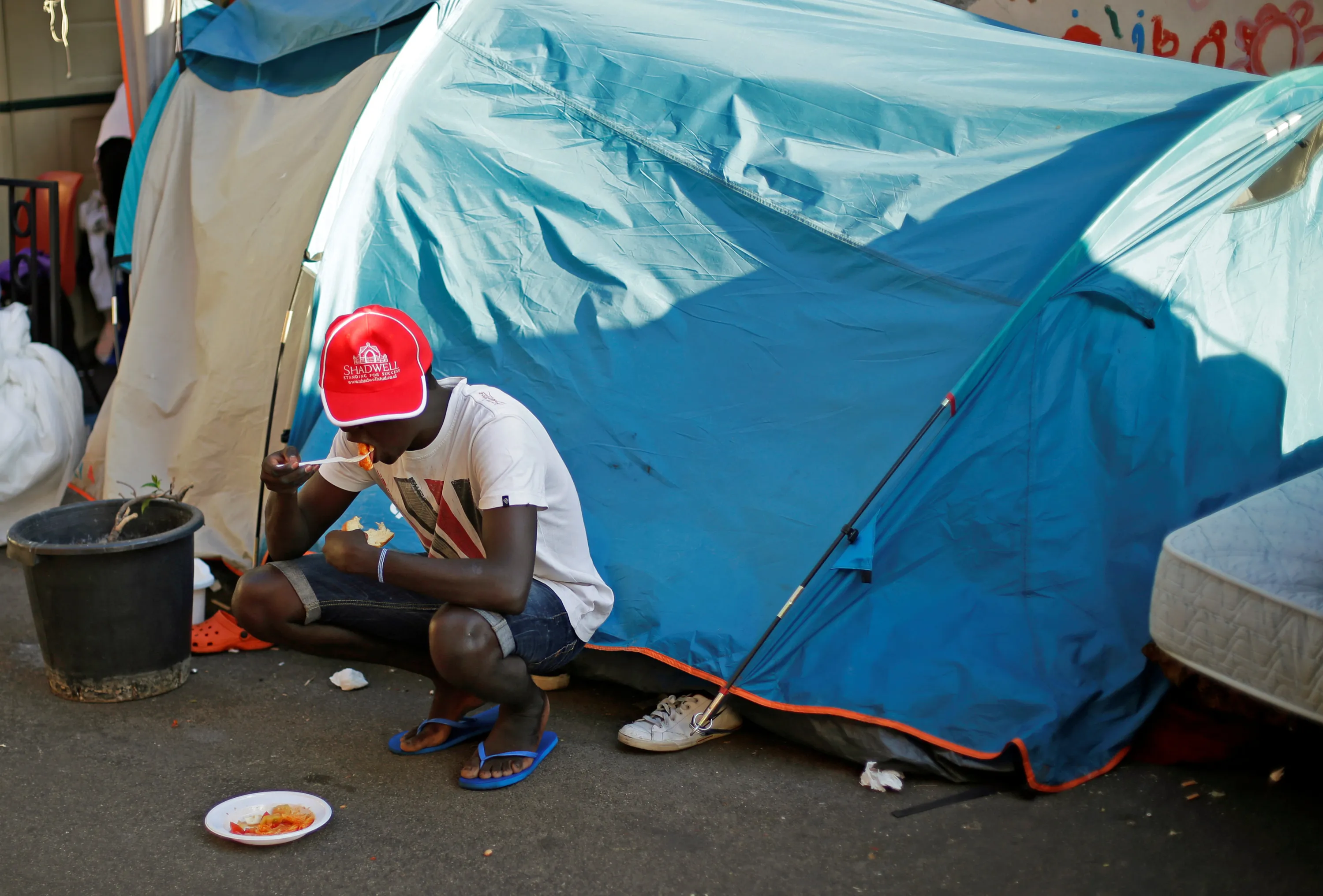 A migrant eats at a makeshift camp in Via Cupa (Gloomy Street) in downtown Rome, Italy, August 1, 2016. (Photo by Max Rossi/Reuters)