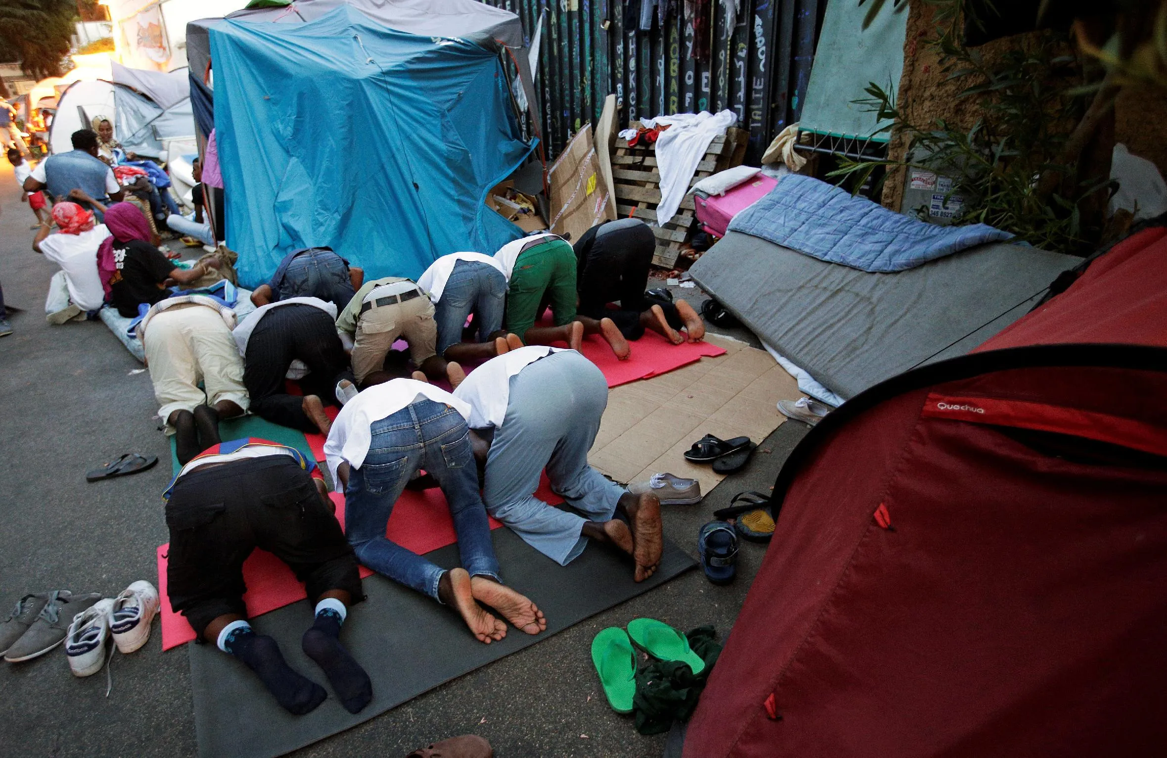 Migrants pray at a makeshift camp in Via Cupa (Gloomy Street) in downtown Rome, Italy, August 1, 2016. (Photo by Max Rossi/Reuters)