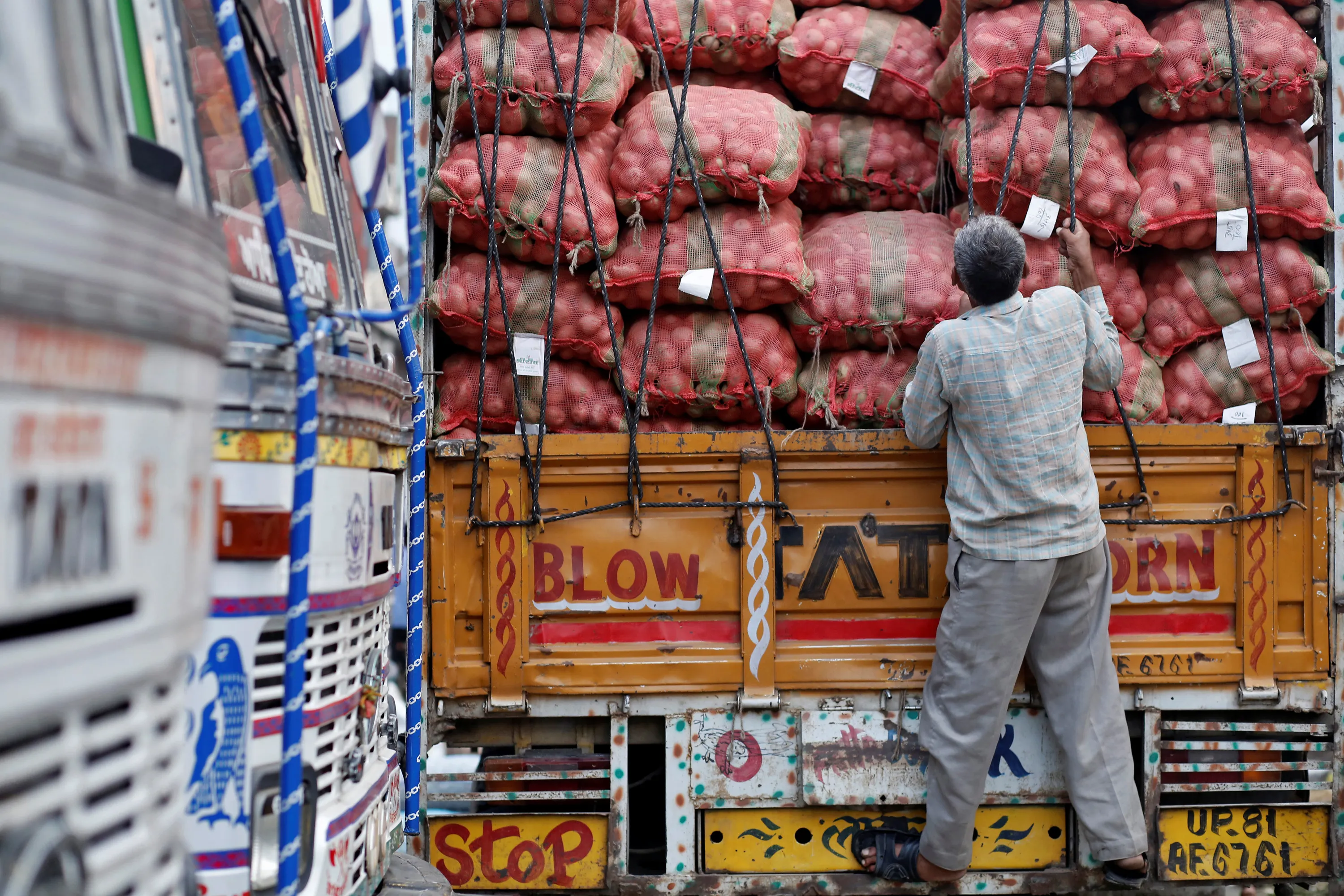 A labourer prepares to unload sacks of potatoes from a truck at a wholesale vegetable and fruit market in New Delhi July 2, 2014. (Photo by Anindito Mukherjee/Reuters)