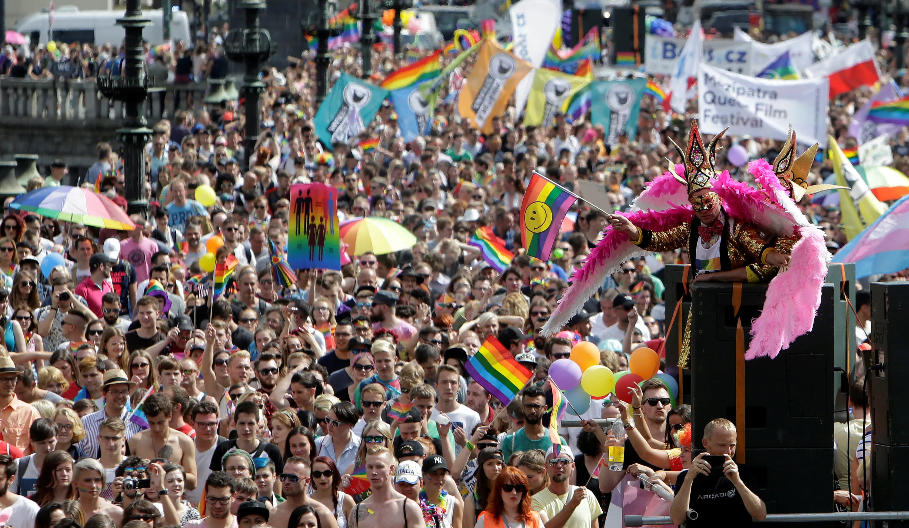 Participants hold rainbow flags during the Prague Pride Parade where thousands marched through the city centre in support of gay rights, in Czech Republic, August 13, 2016. (Photo by David W. Cerny/Reuters)