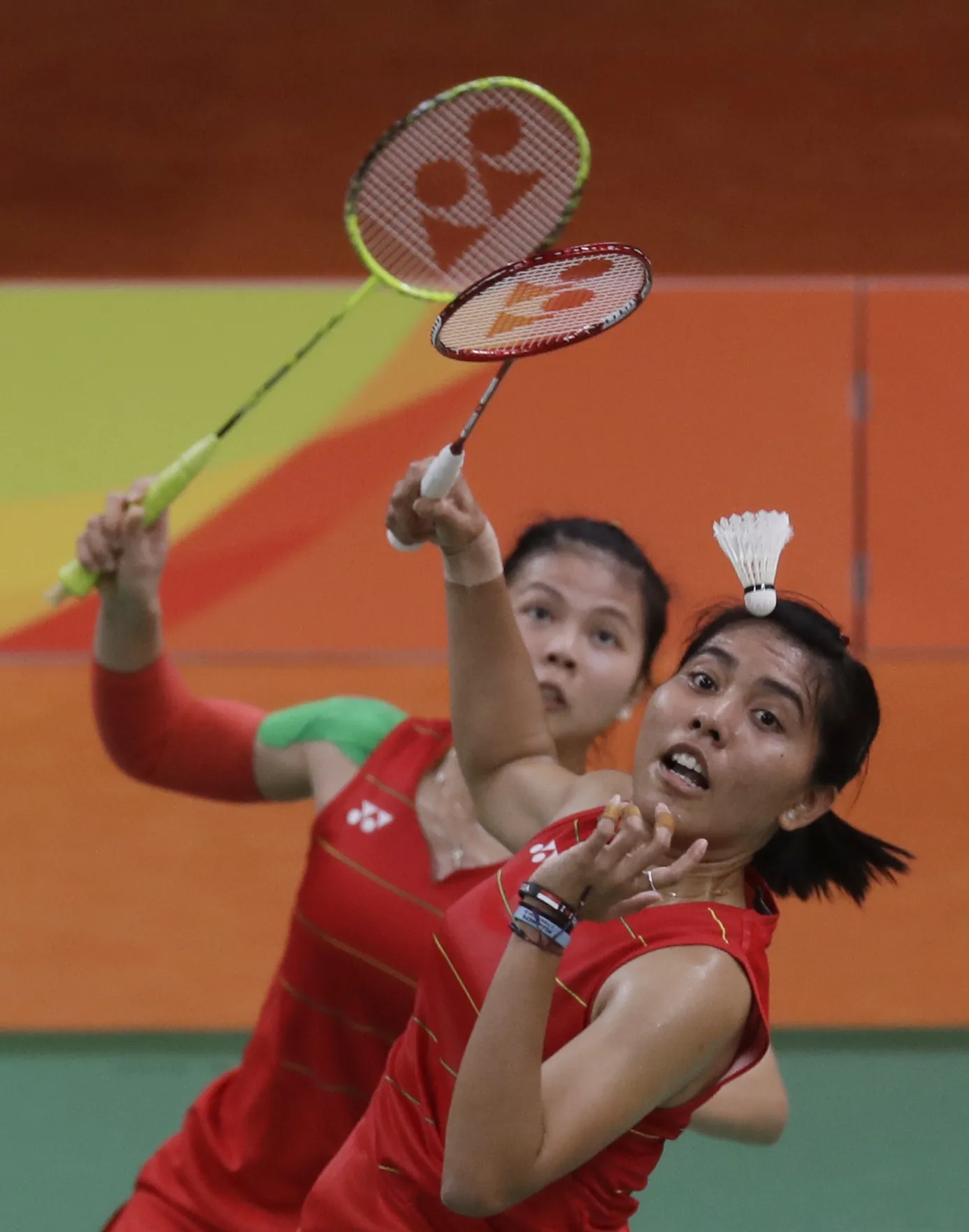 Indonesia's Nitya Krishinda Maheswari, right, and Greysia Polii, return a shot to Malaysia's Vivian Hoo Kah Mun and Woon Khe Wei during a Women Double match at the 2016 Summer Olympics in Rio de Janeiro, Brazil, Saturday, August 13, 2016. (Photo by Kin Cheung/AP Photo)