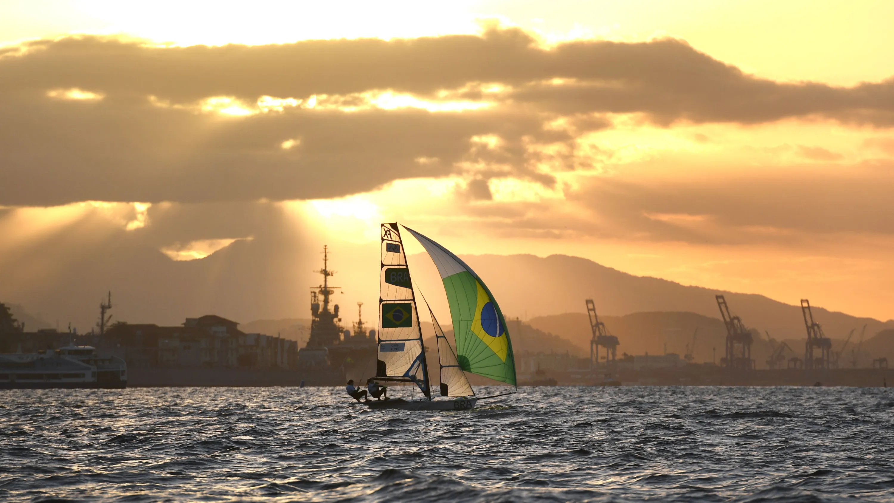 Brazil's Kahena Kunze and Brazil's Martine Grael compete in the 49er FX Women sailing class on Guanabara Bay in Rio de Janerio during the Rio 2016 Olympic Games on August 12, 2016. (Photo by William West/AFP Photo)
