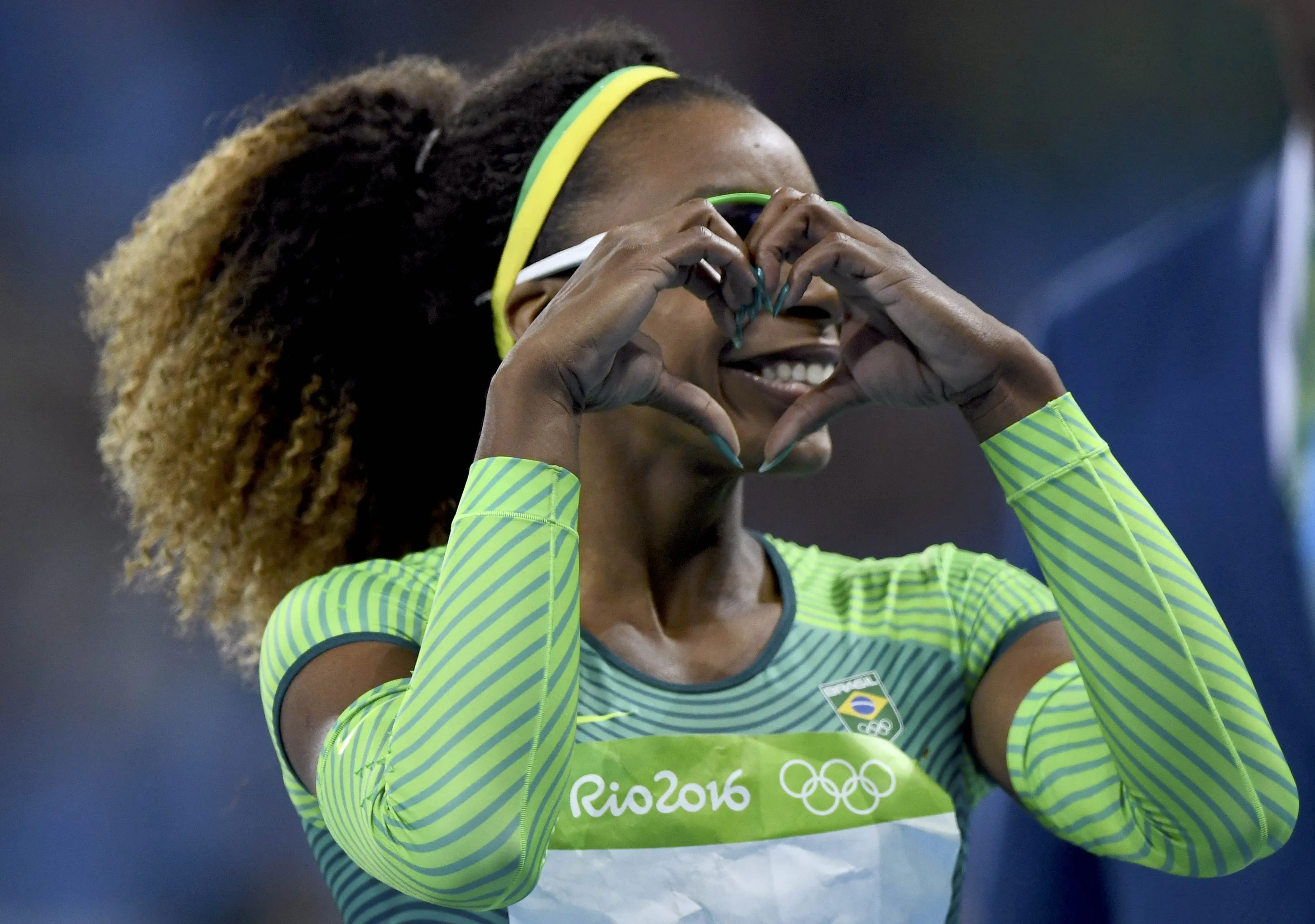 2016 Rio Olympics, Athletics, Preliminary, Women's 100m Round 1, Olympic Stadium, Rio de Janeiro, Brazil on August 12, 2016. Rosangela Santos (BRA) of Brazil reacts. (Photo by Dylan Martinez/Reuters)