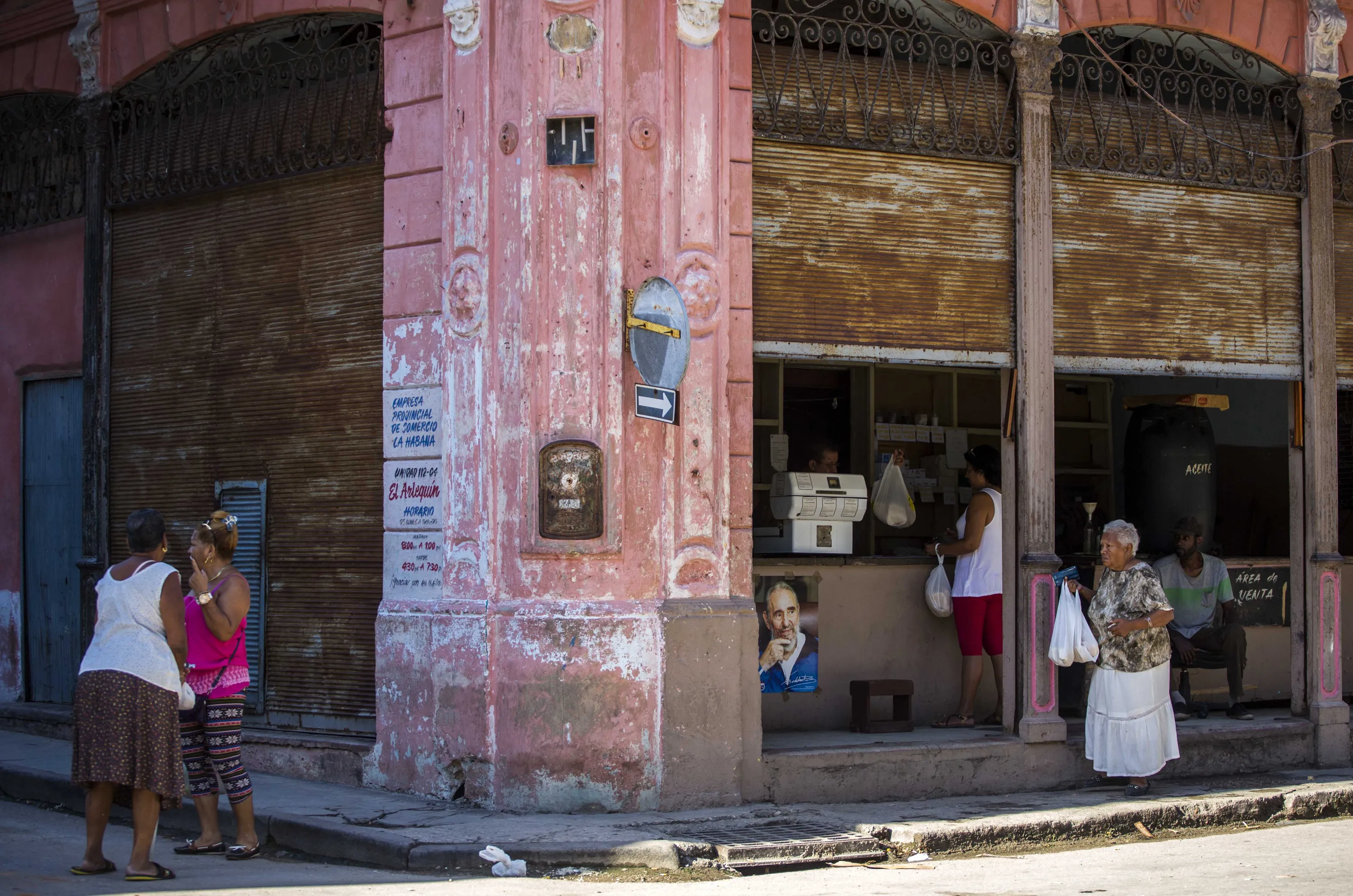 A poster of Cuban Revolution leader Fidel Castro is seen fixed on the counter of a state rationing store or bodega as people do their shopping in central Havana, Cuba, Saturday, August 13, 2016. (Photo by Desmond Boylan/AP Photo)