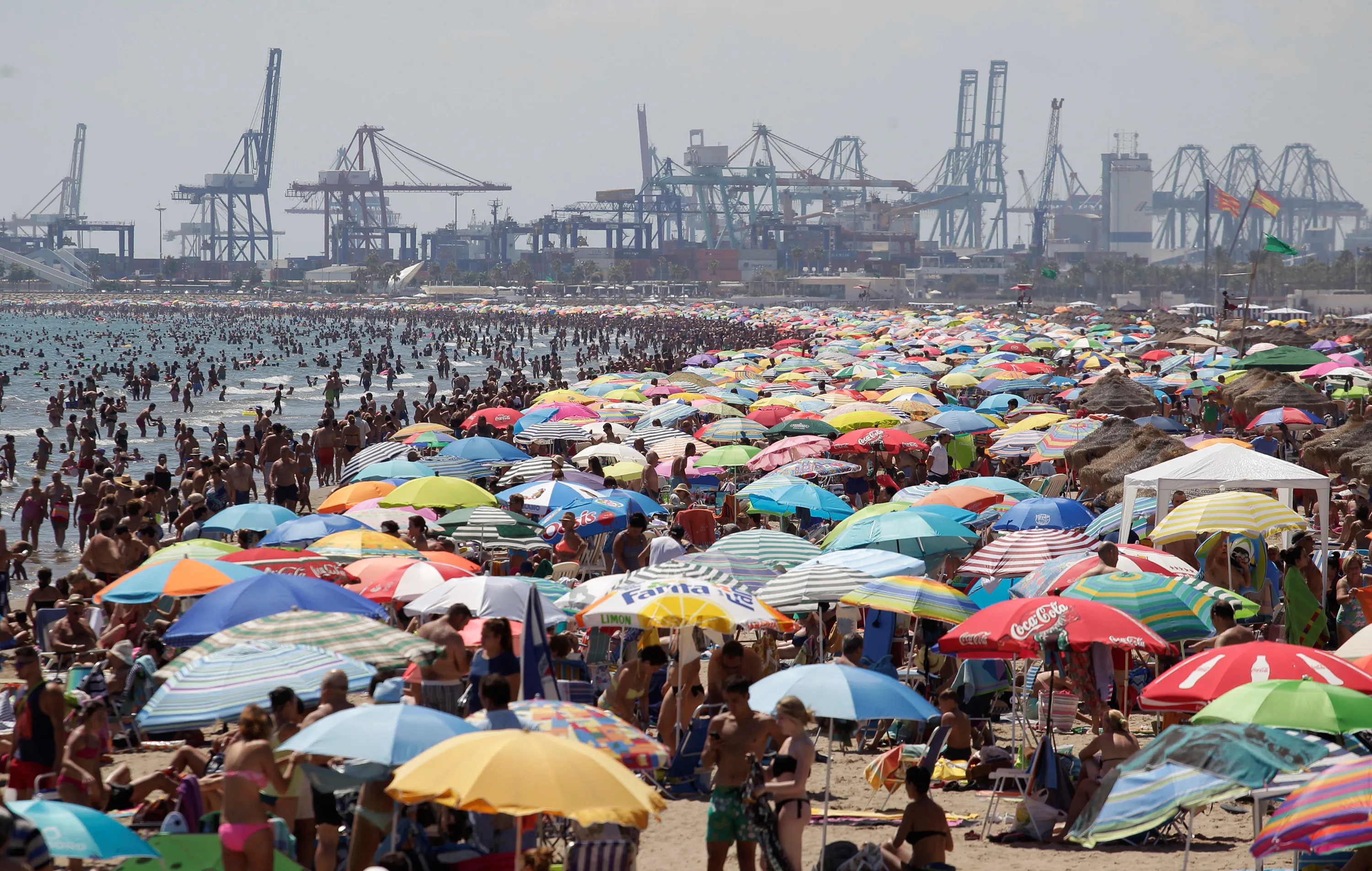 People enjoy the beach in Valencia, Spain August 14, 2016. (Photo by Heino Kalis/Reuters)