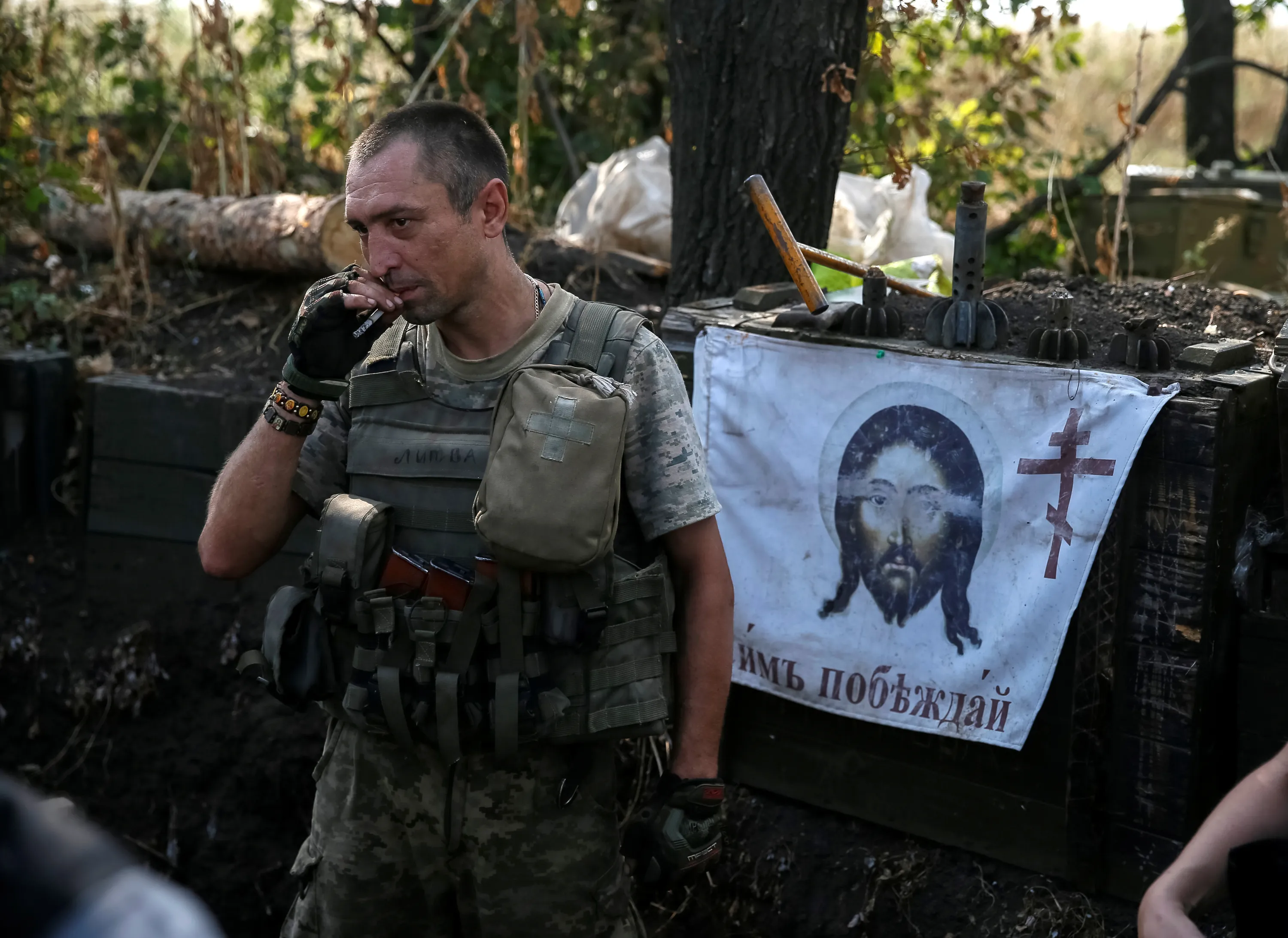 Ukrainian serviceman is seen at his position on the front line in Krasnogorivka near Donetsk, Ukraine, August 12, 2016. (Photo by Gleb Garanich/Reuters)