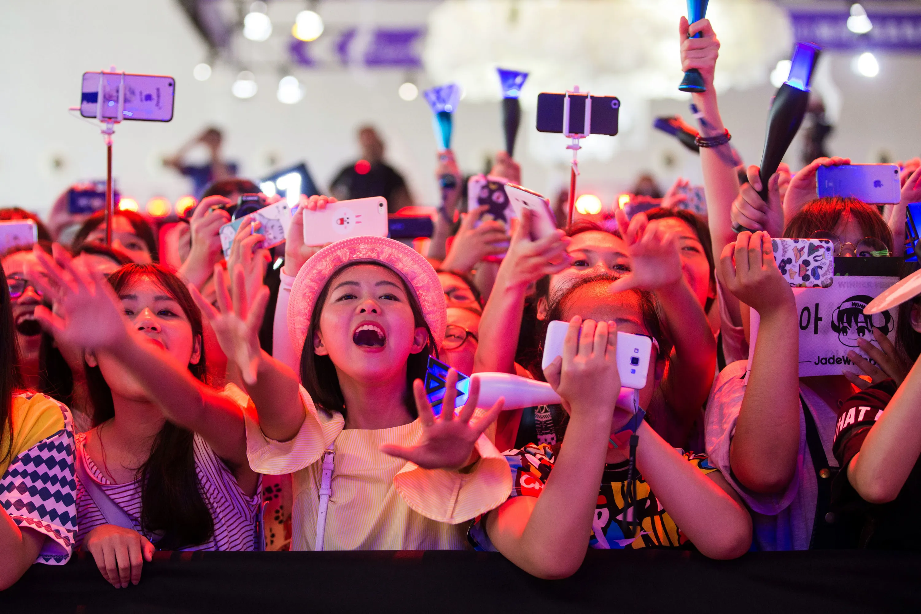 In this Friday, July 22, 2016 photo, Chinese fans cheer during a concert by the South Korean K-Pop group Winner in Shanghai. Chinese anger at South Korea over its decision to deploy an U.S. anti-missile defense system appears to be threatening everything from appearances by the stars of K-Pop to future cooperation on North Korea at the United Nations. (Photo by Chinatopix via AP Photo)