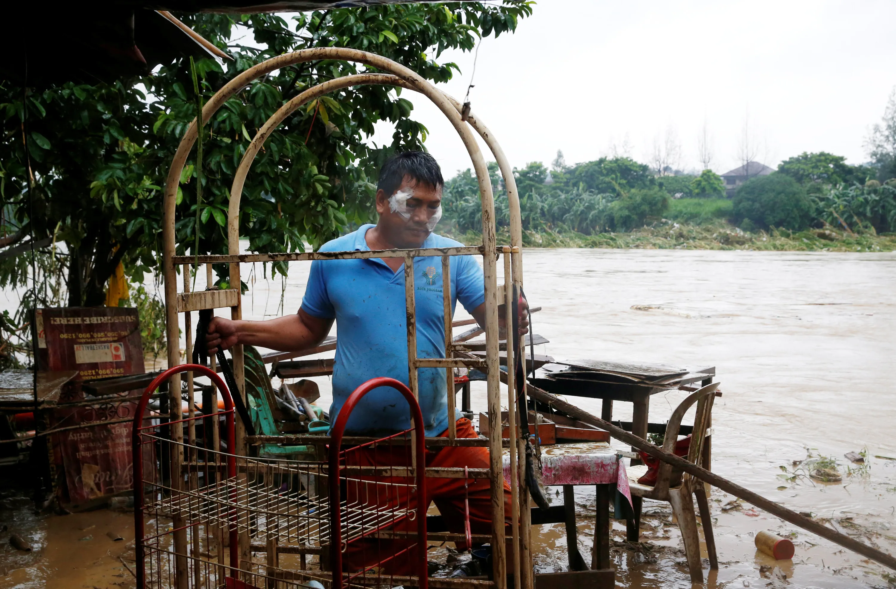A resident wounded from flooding brought by monsoon rains, arranges his furniture in San Mateo, Rizal, Philippines, August 14, 2016. (Photo by Erik De Castro/Reuters)