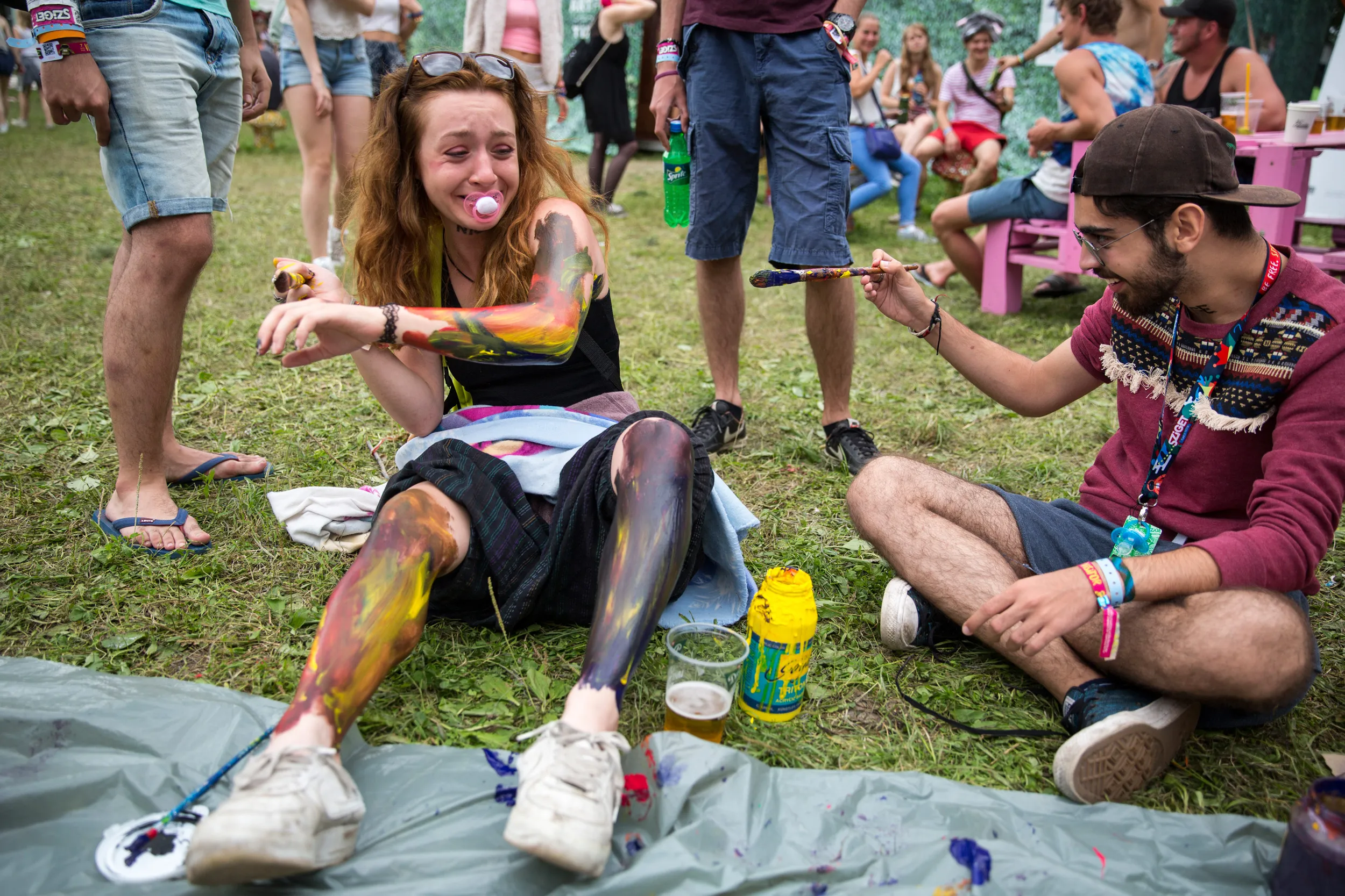 Festival-goers enjoy on Shipyard Island, the venue of the 24th Sziget (Island) Festival in Northern Budapest, Hungary, 13 August 2016. (Photo by Hirling Bálint/Origo.hu)
