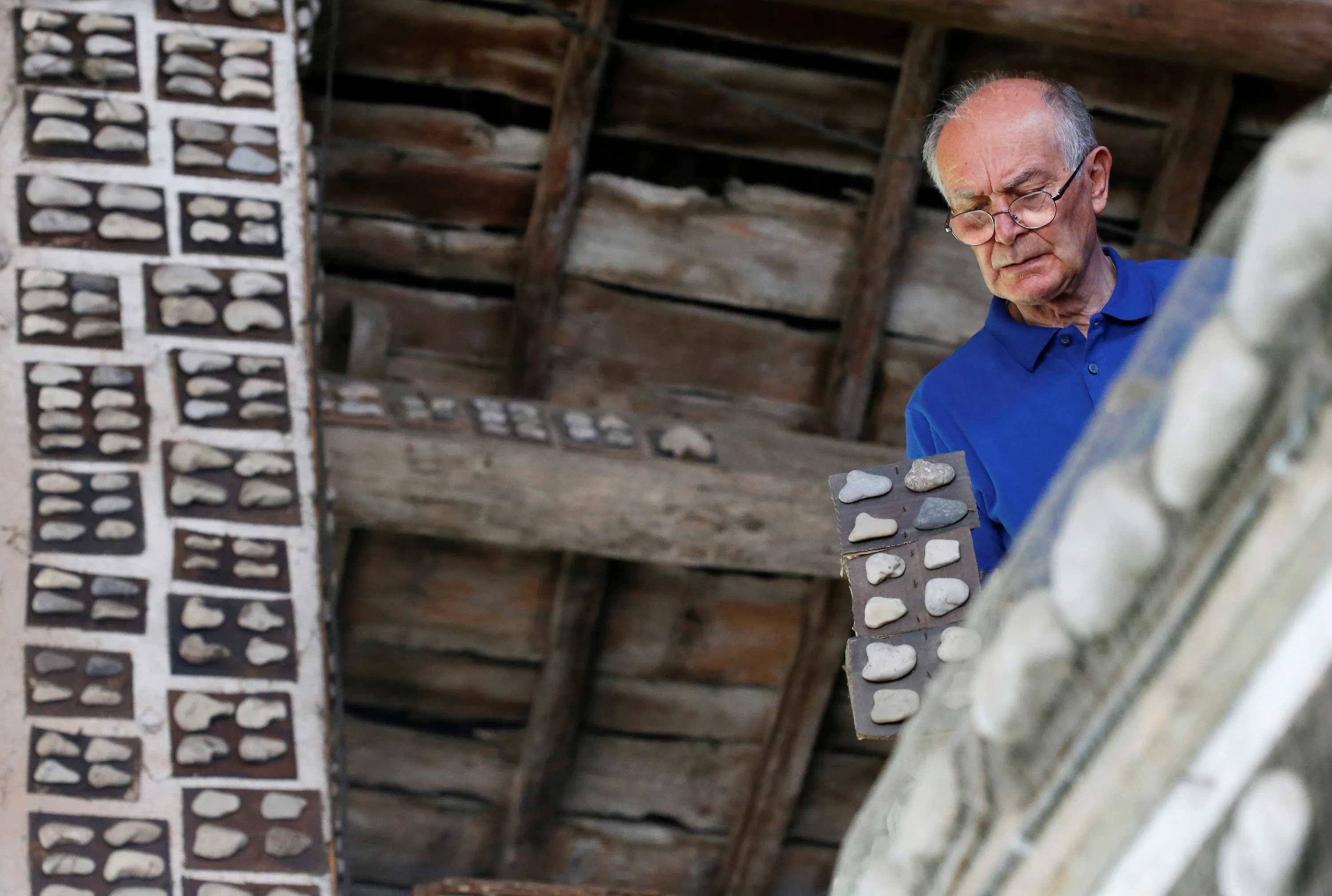 Stone collector Luigi Lineri, 79, looks at his collection of stones found along Adige river, at his home workshop in Zevio, near Verona, Italy, June 10, 2016. (Photo by Alessandro Bianchi/Reuters)