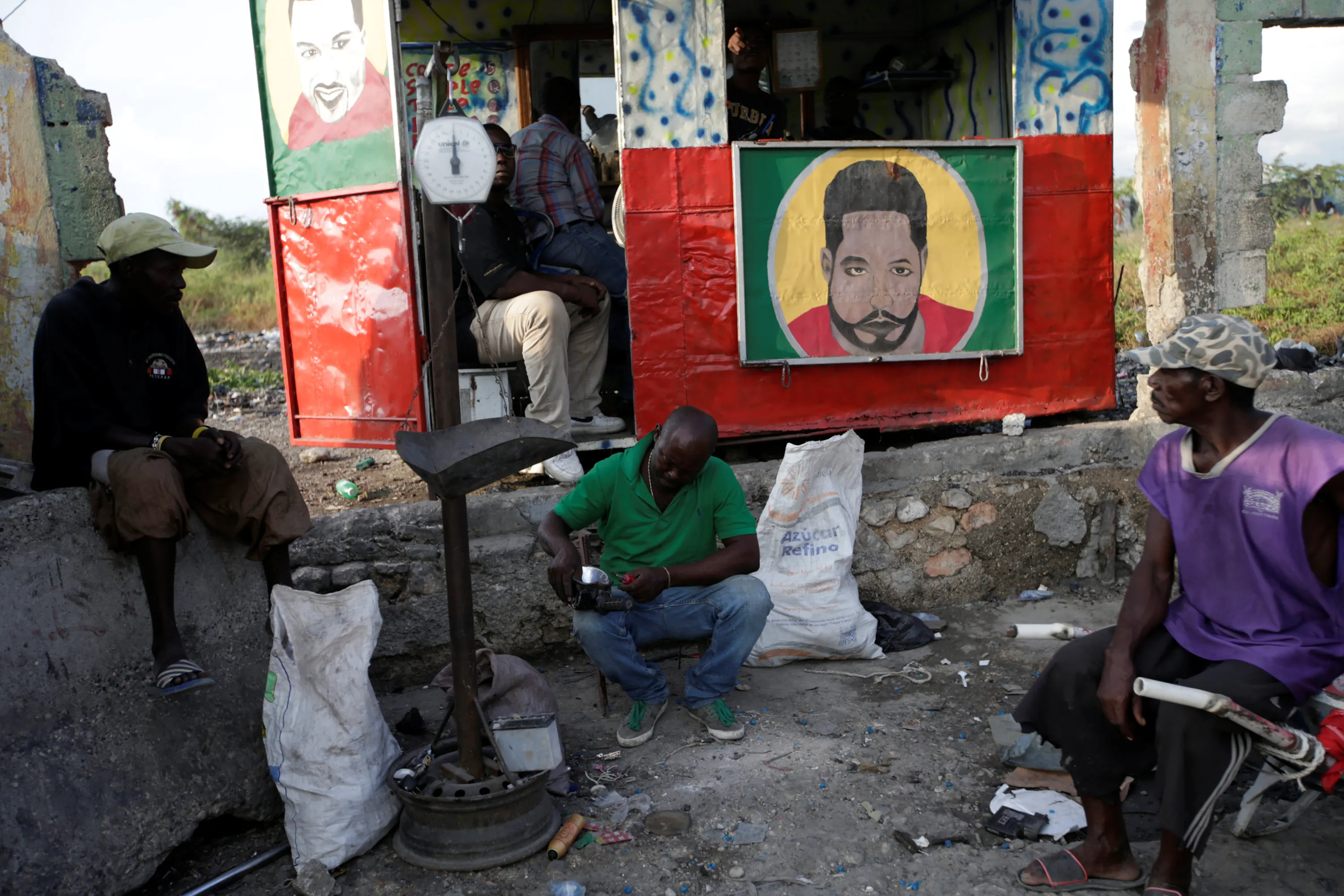 Men sit at scrap metal stand along a street in Port-au-Prince, Haiti, July 14, 2016. (Photo by Andres Martinez Casares/Reuters)
