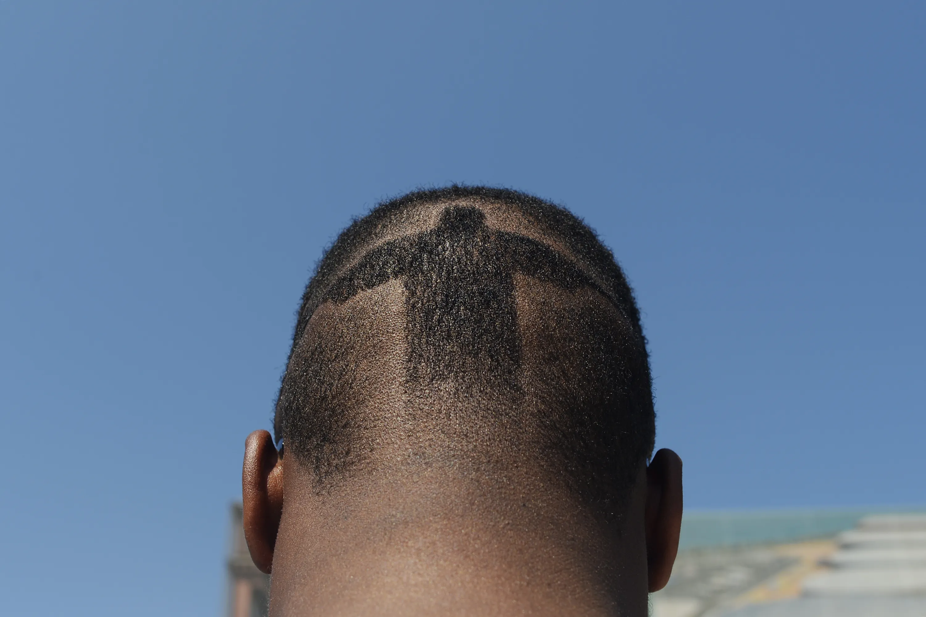 Kenzo Hartless rocks a Cristo Redentor shave in his hair outside of Olympic Park on Wednesday, August 17, 2016. (Photo by Aaron Ontiveroz/The Denver Post)