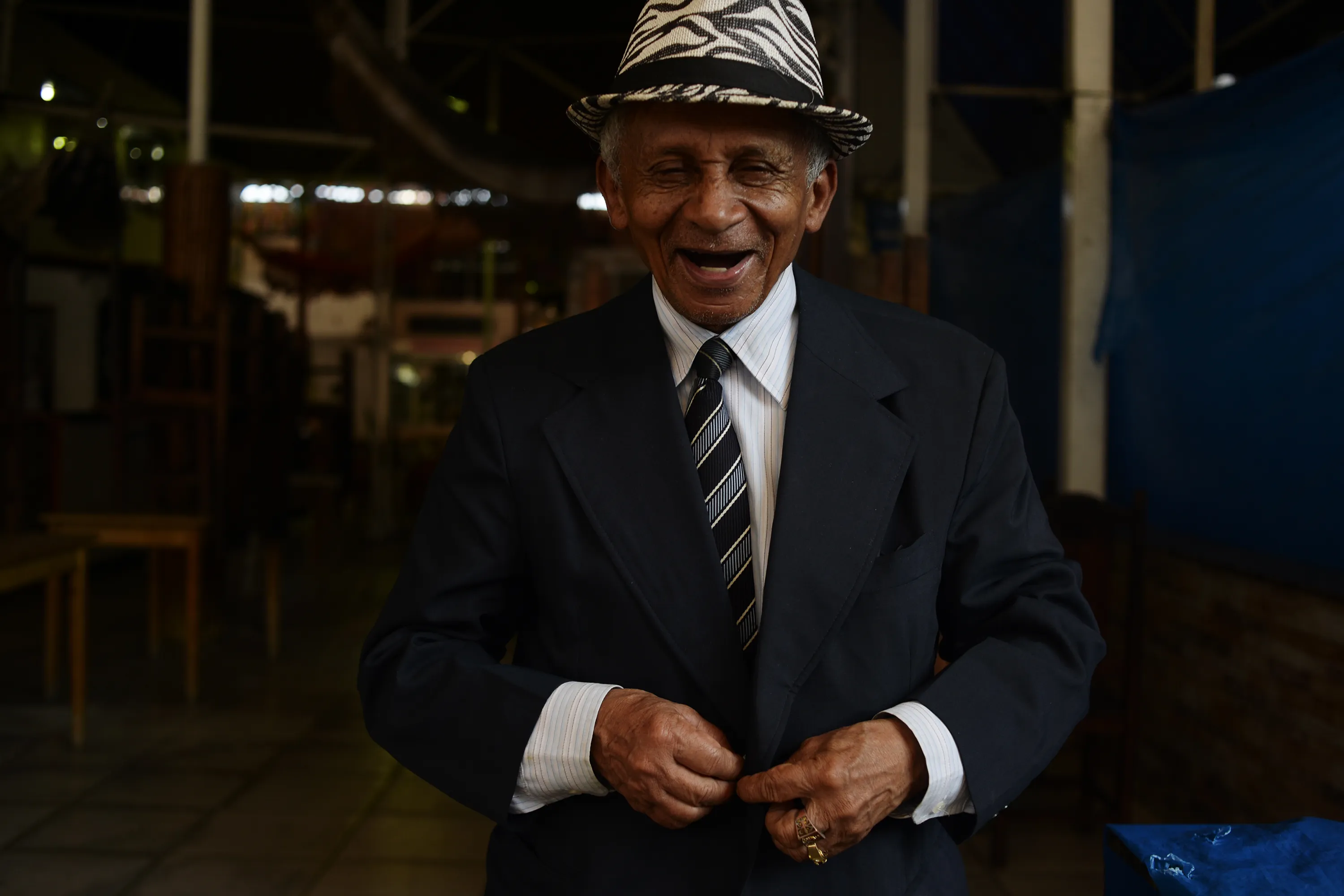 Pedro Gonzaga Marques de Santana rocks fresh gear at Feira Nordestina outside of the Olympic periphery on Wednesday, August 17, 2016. (Photo by Aaron Ontiveroz/The Denver Post)