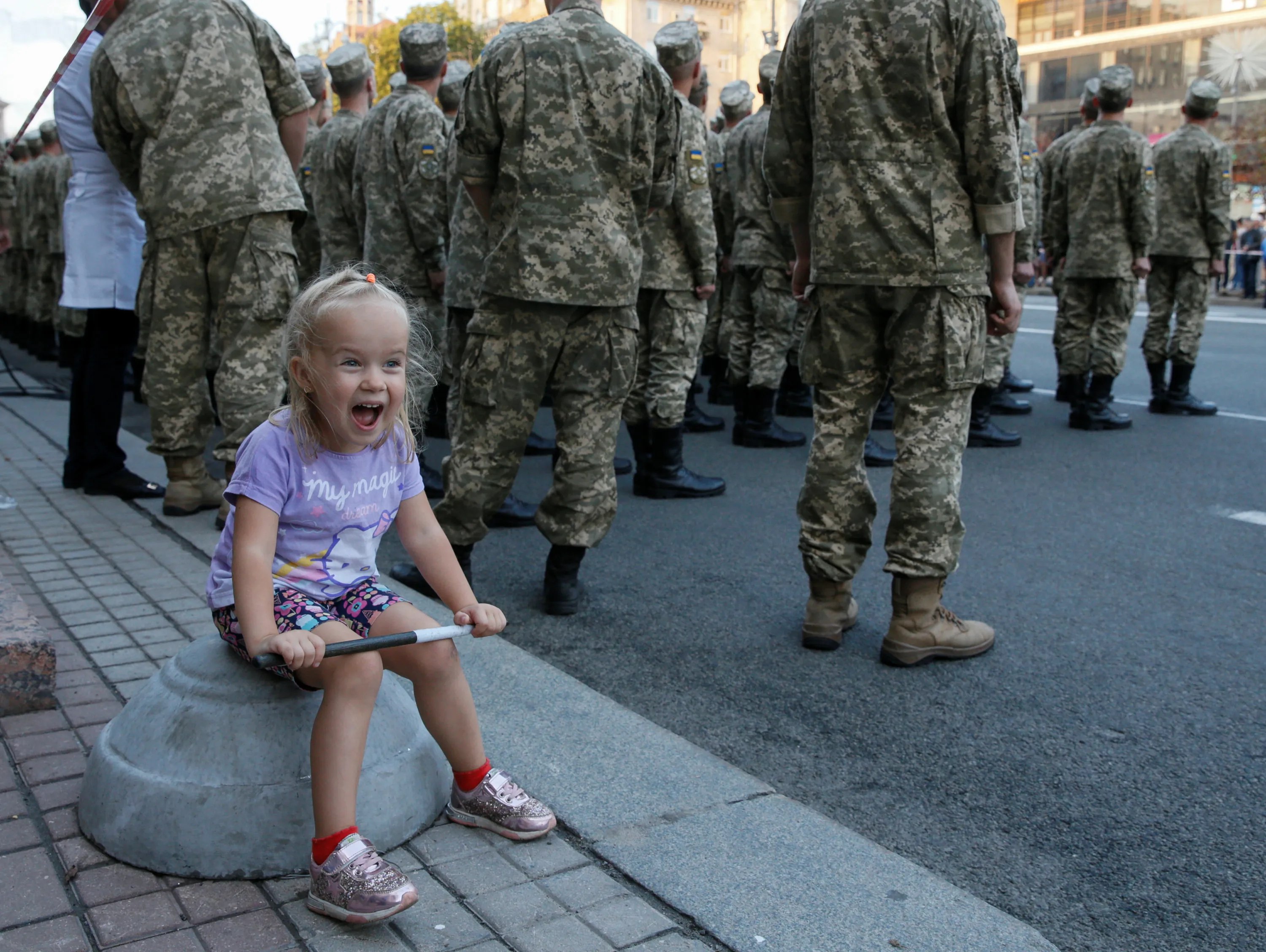 A girl reacts during a rehearsal for the Independence Day military parade in central Kiev, Ukraine, August 19, 2016. (Photo by Valentyn Ogirenko/Reuters)