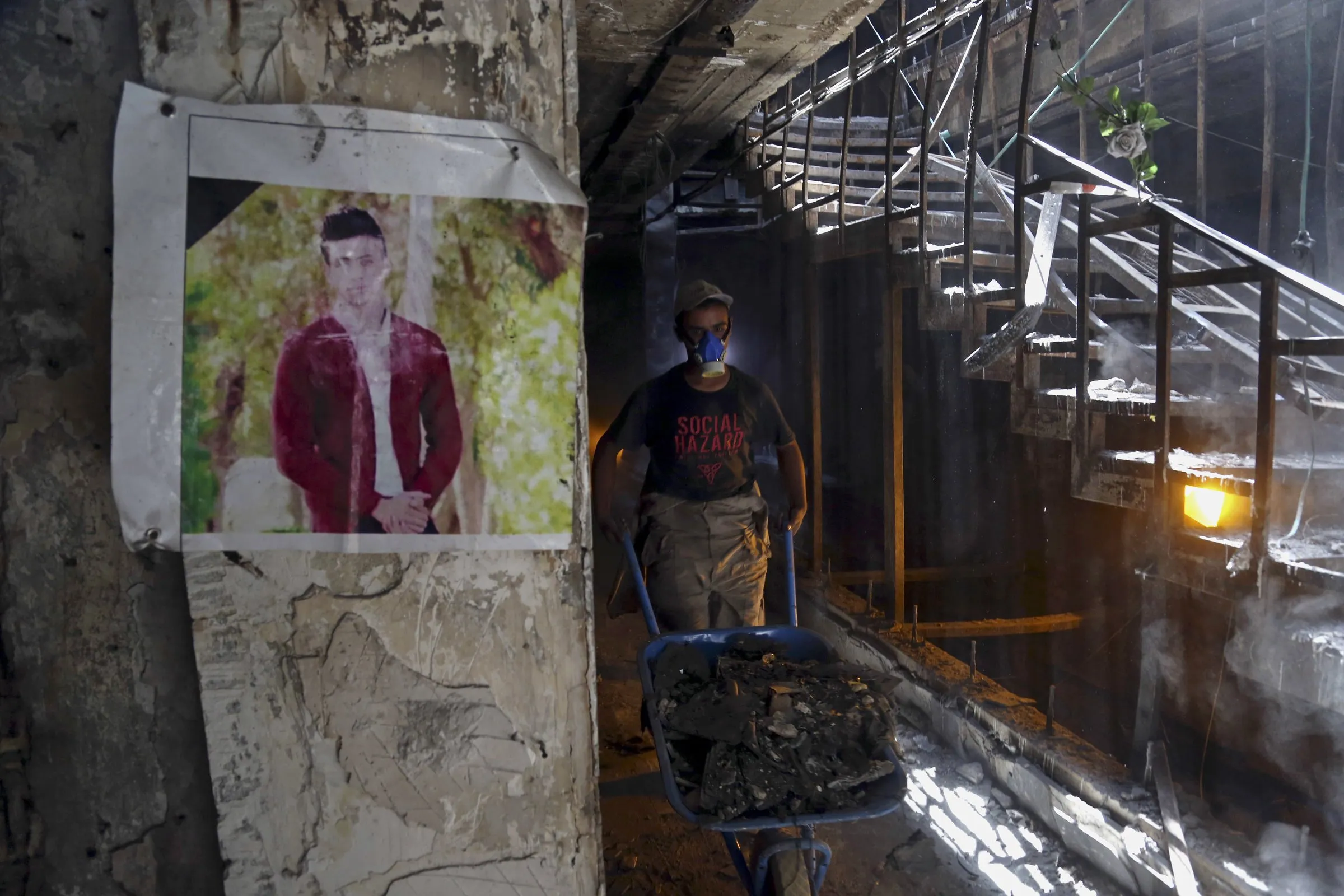 A municipal worker passes by a poster of a bomb victim during the cleaning process at the site of a deadly Islamic State group-claimed mall bombing in the Karradah neighborhood of central Baghdad, Iraq, Sunday, August 21, 2016. The scene of the blast that ultimately claimed the lives of nearly 300 people, according to the ministry of health, sat as a memorial to the dead for weeks after the attack. The July 3 attack was the single deadliest bombing in Baghdad since the 2003 toppling of Saddam Hussein and it fueled anger toward the Iraqi government over the lack of security in the capital. (Photo by Khalid Mohammed/AP Photo)