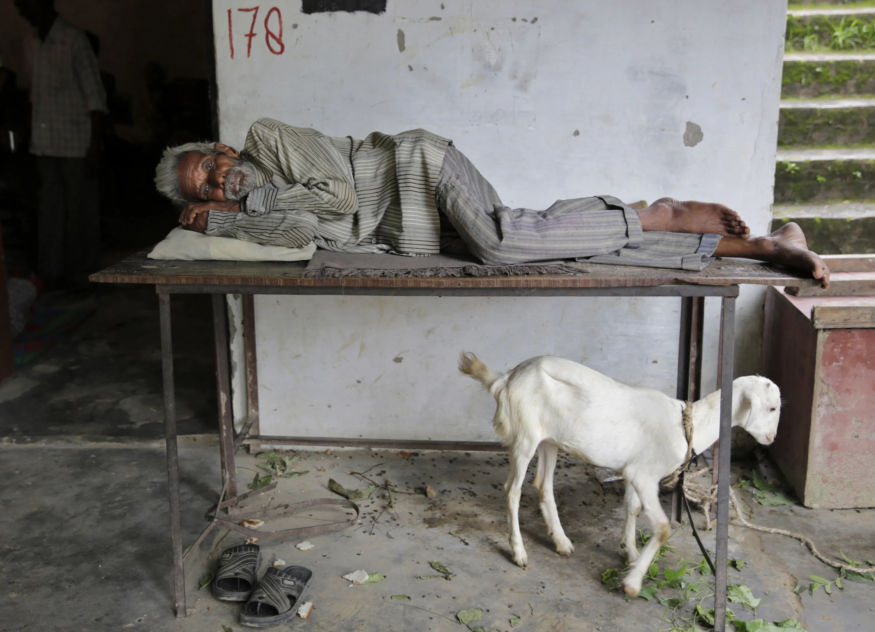 A man takes a rest at a temporary shelter after several areas were flooded in Allahabad, India, Monday, August 22, 2016. Heavy rainfall in the upper reaches of the country has caused rivers to overflow endangering lives and properties of people along the river Ganges as also in other parts of the country. (Photo by Rajesh Kumar Singh/AP Photo)