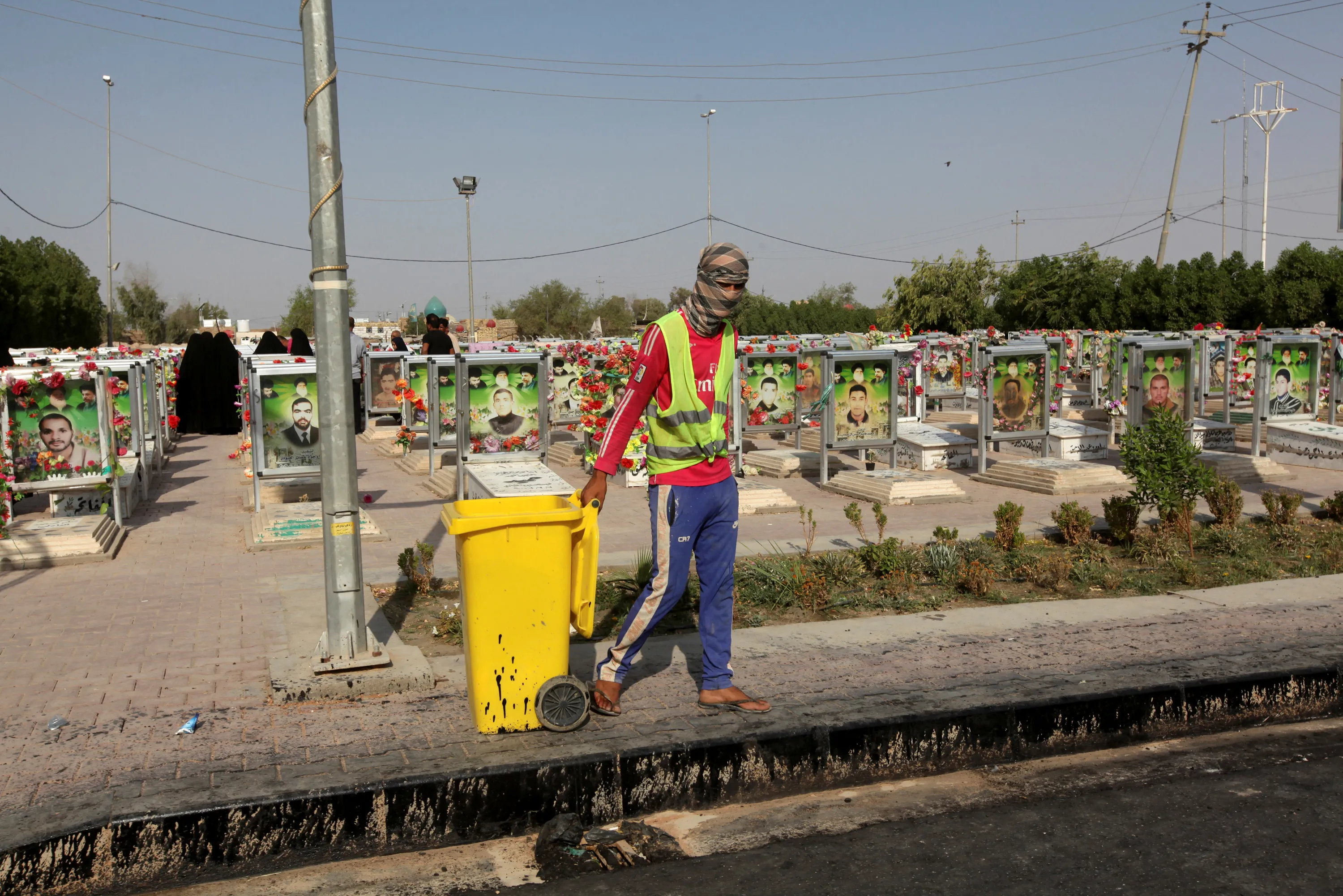 A municipality worker pulls a trash container at the Wadi al-Salam cemetery, Arabic for “Peace Valley”, in Najaf, south of Baghdad, Iraq, August 5, 2016. (Photo by Alaa Al-Marjani/Reuters)