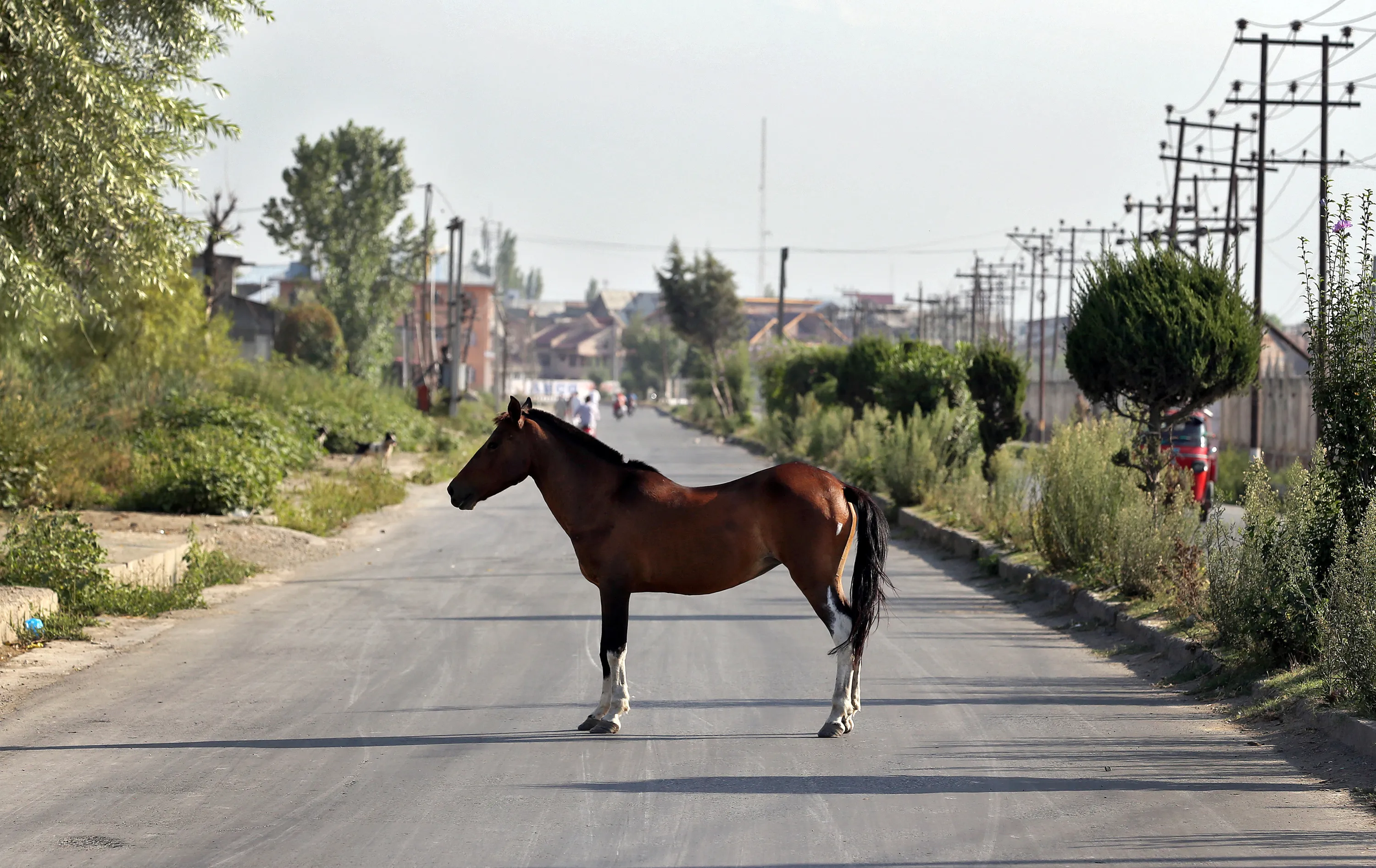 A horse stands in the road in Srinagar as the city remains under curfew following weeks of violence in Kashmir, August 21, 2016. (Photo by Cathal McNaughton/Reuters)