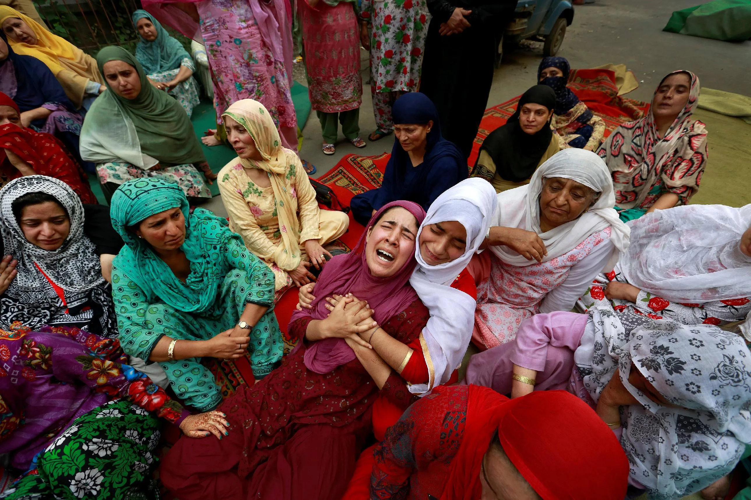 Relatives of Irfan Ahmed, who according to local media died after being hit by a tear gas canister fired by security forces, mourn his death in Srinagar as the city remains under curfew following weeks of violence in Kashmir, August 22, 2016. (Photo by Cathal McNaughton/Reuters)